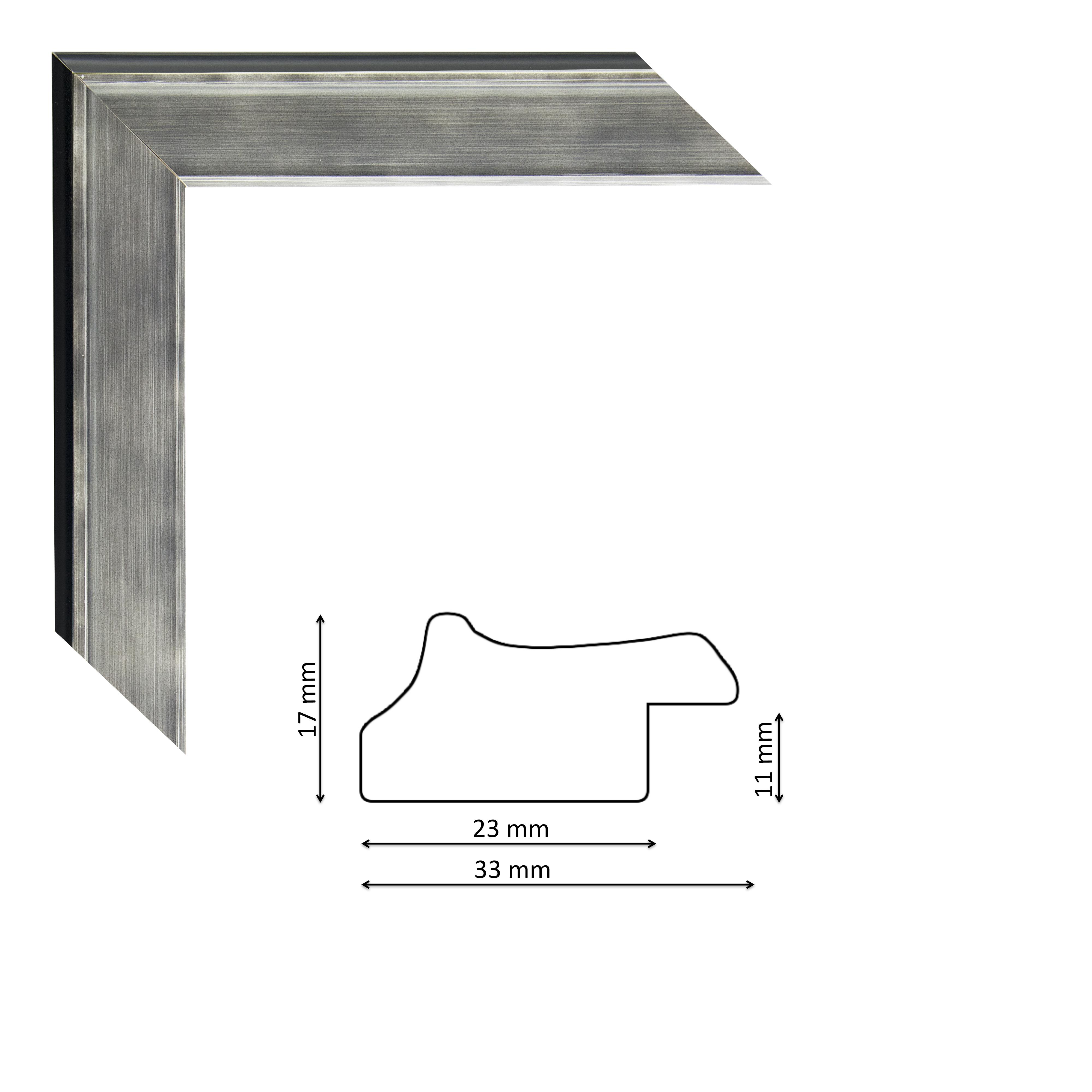 Képkeretléc IM5301-474 Kérdése van? Modern, enyhén profilos sötétszürke spanyol képkeretléc, fekete színű oldallal, trópusi fából.