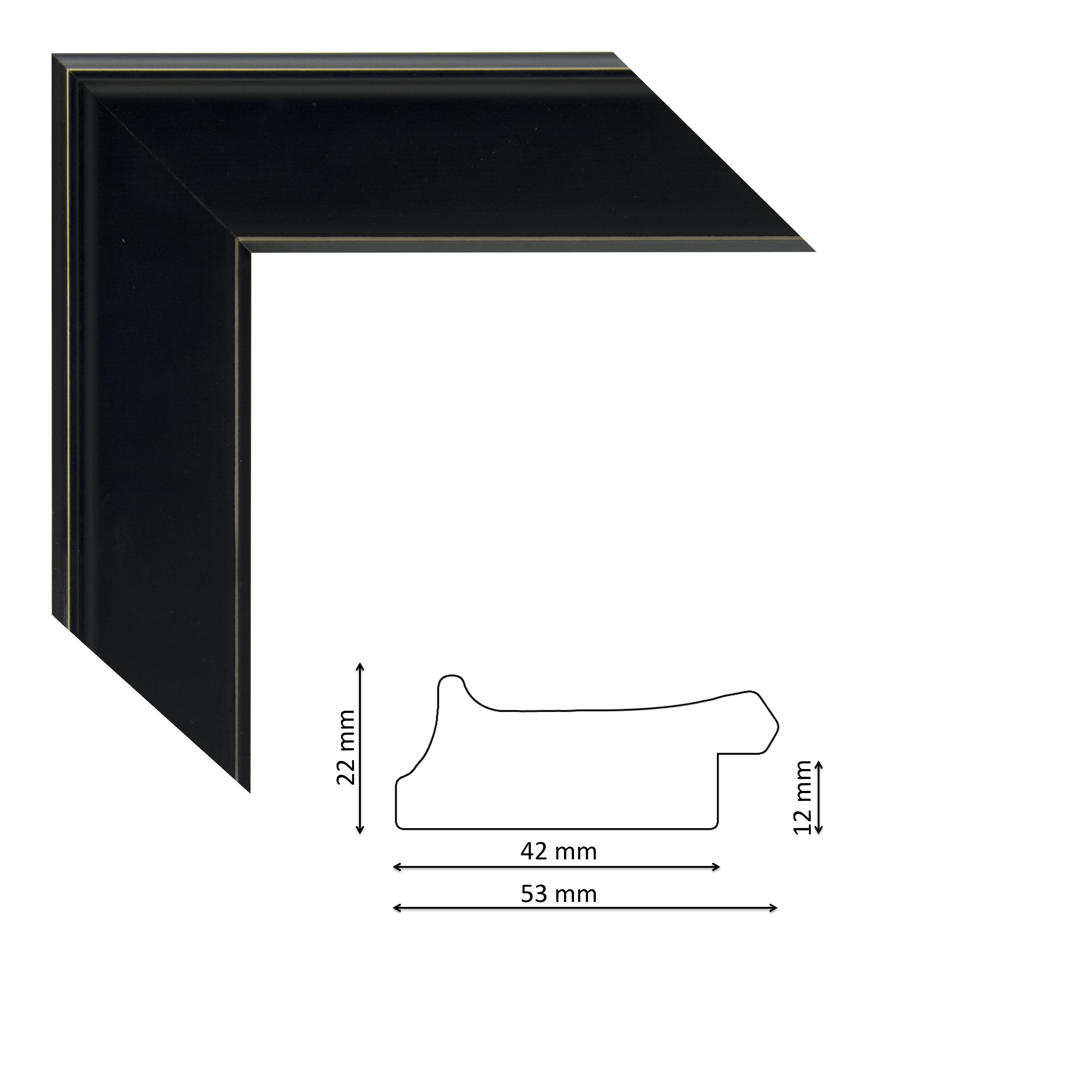 Képkeretléc IM5302-470 Kérdése van? Modern, enyhén profilos fekete spanyol képkeretléc, natúr élekkel, trópusi fából.