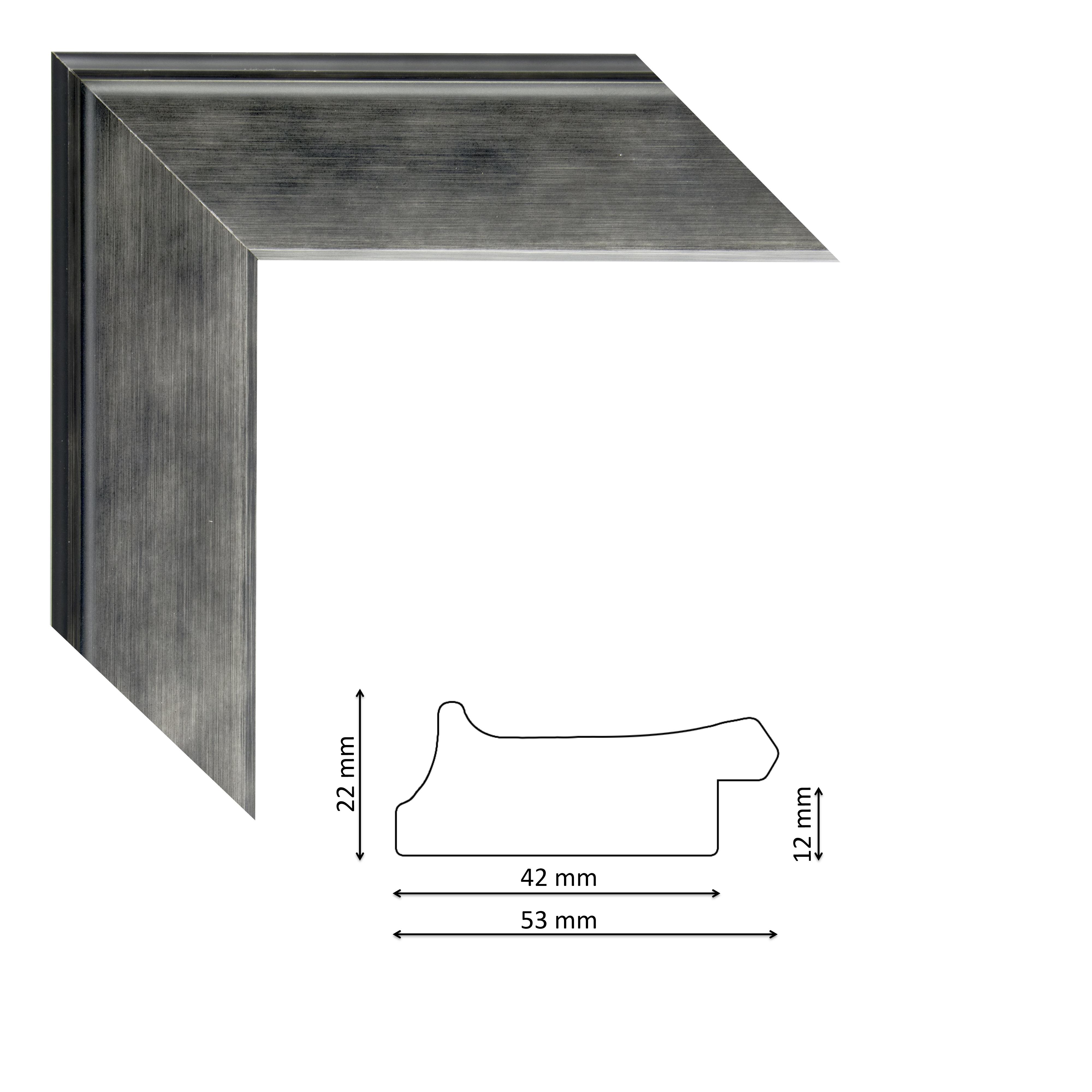 Képkeretléc IM5302-474 Kérdése van? Modern, enyhén profilos sötétszürke spanyol képkeretléc, fekete színű oldallal, trópusi fából.
