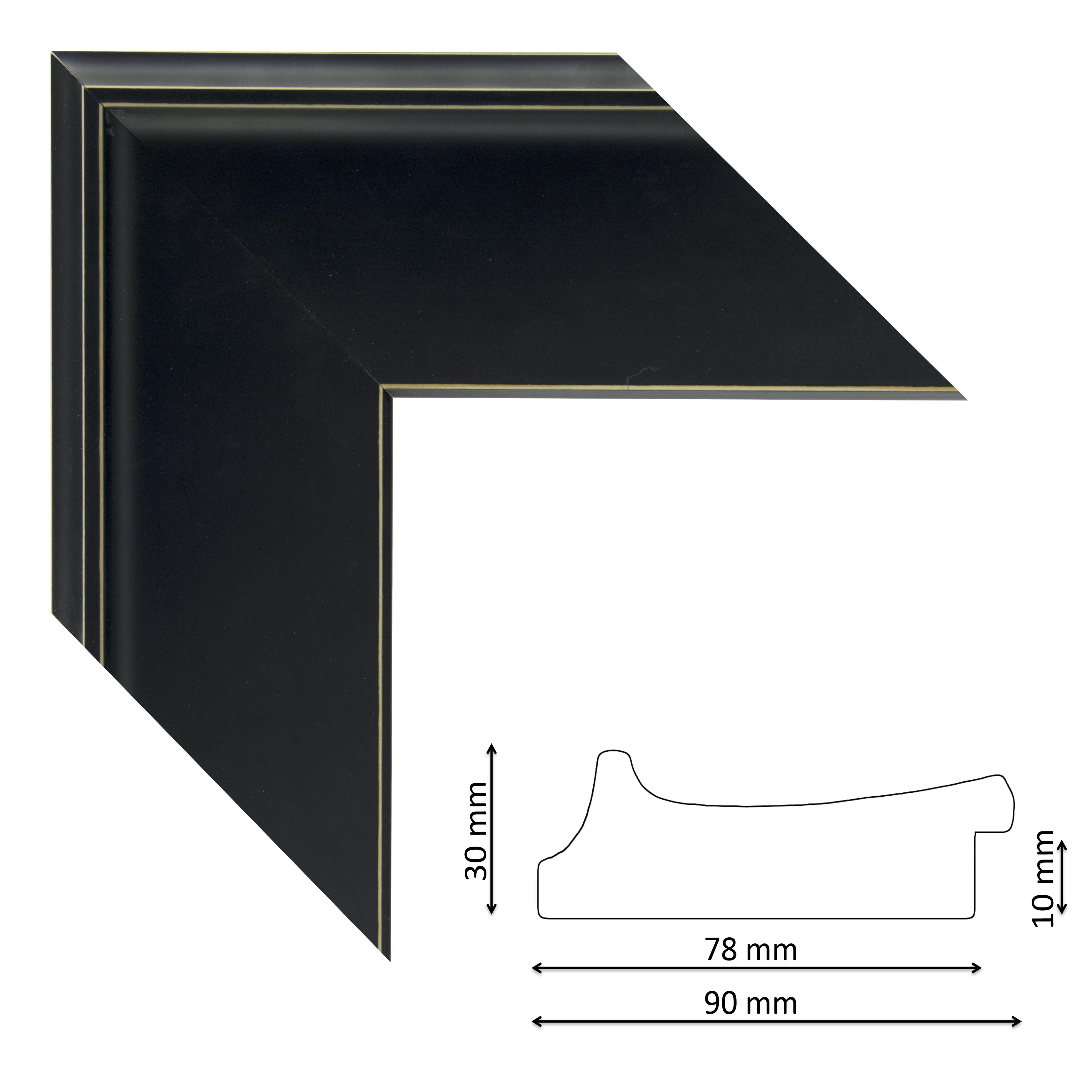 Képkeretléc IM5303-470 Kérdése van? Modern, enyhén profilos fekete spanyol képkeretléc, natúr élekkel, trópusi fából.