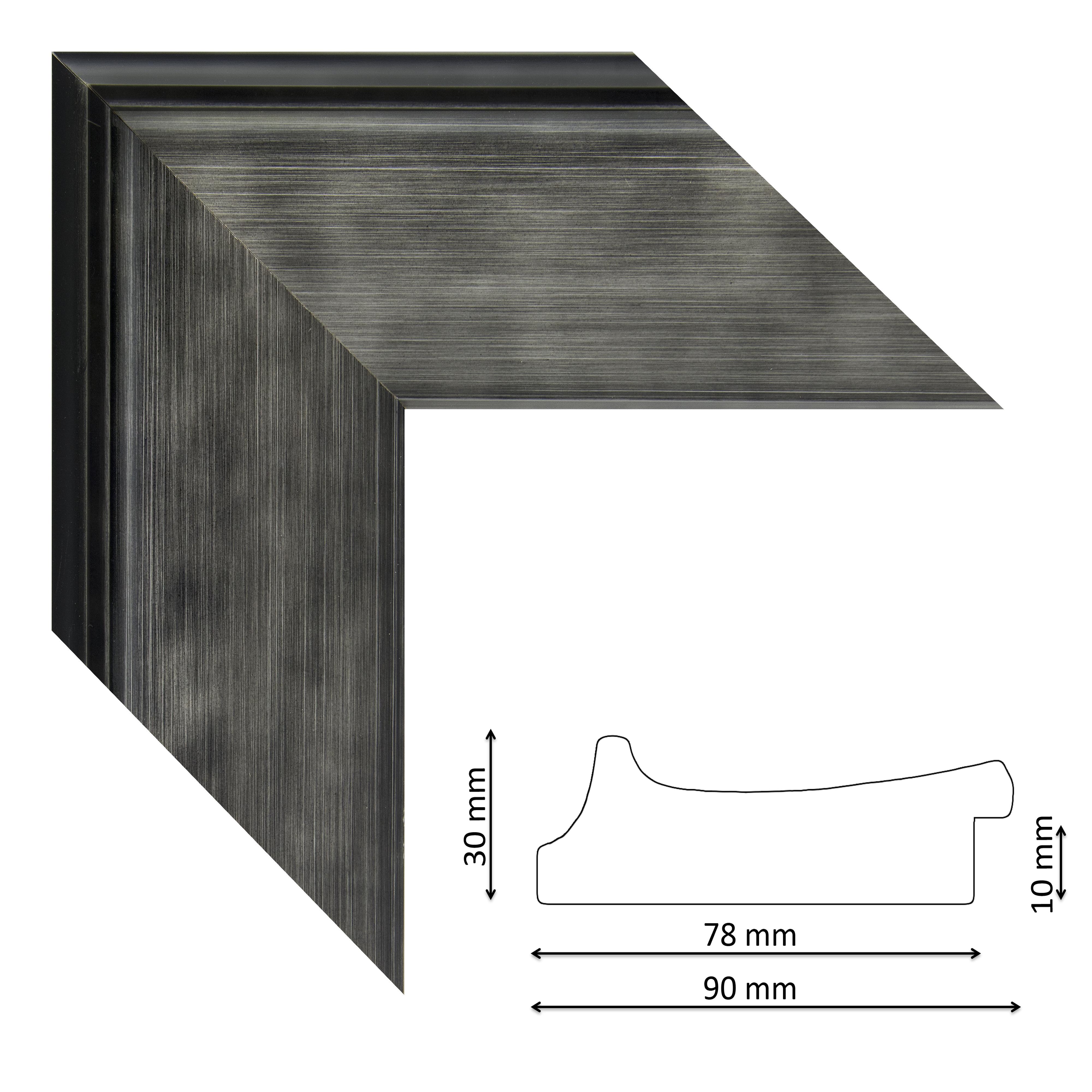 Képkeretléc IM5303-474 Kérdése van? Modern, enyhén profilos sötétszürke spanyol képkeretléc, fekete színű oldallal, trópusi fából.