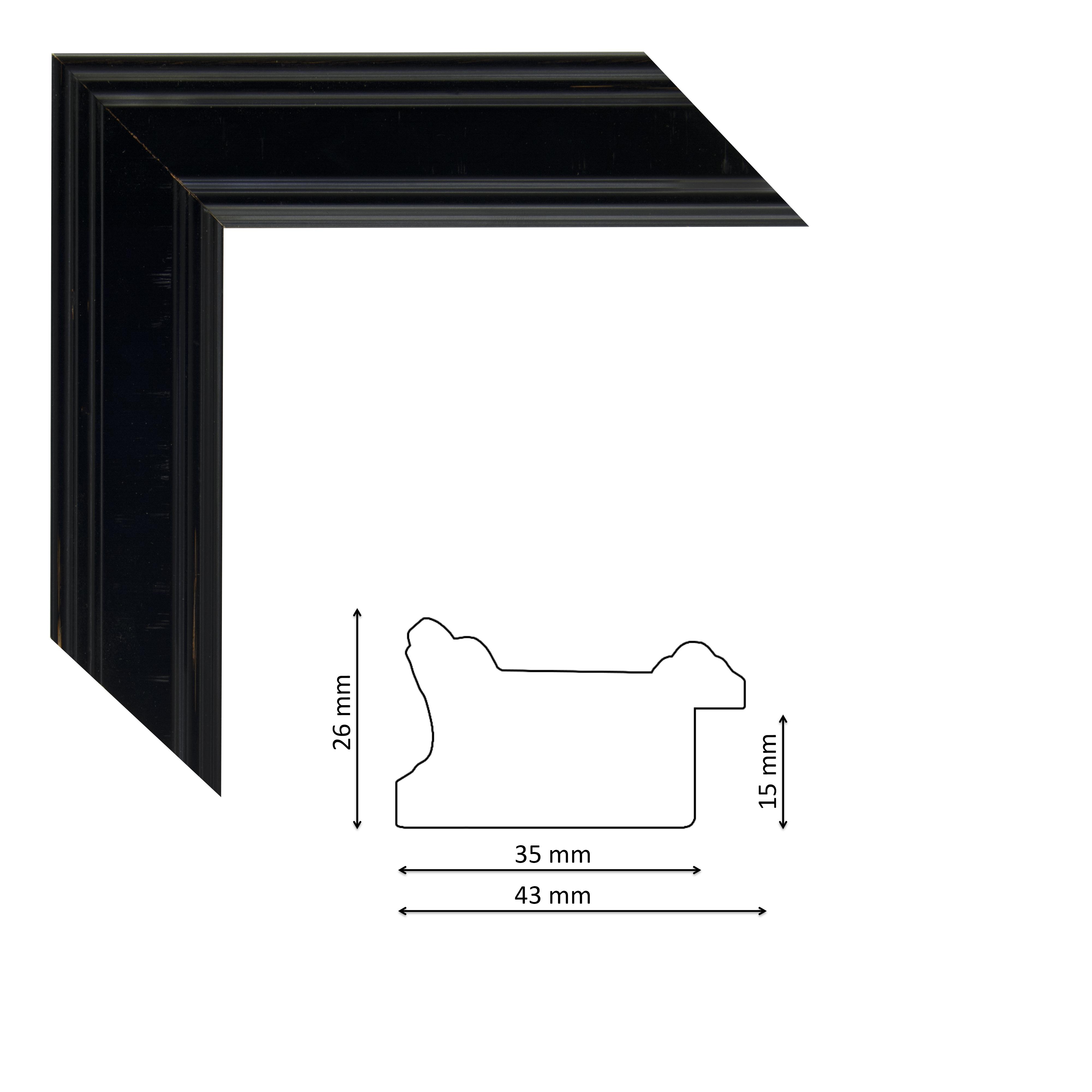 Képkeretléc IM6201-571 Kérdése van? Enyhén profilos spanyol képkeretléc fekete színben, narancsos antikolással, trópusi fából.