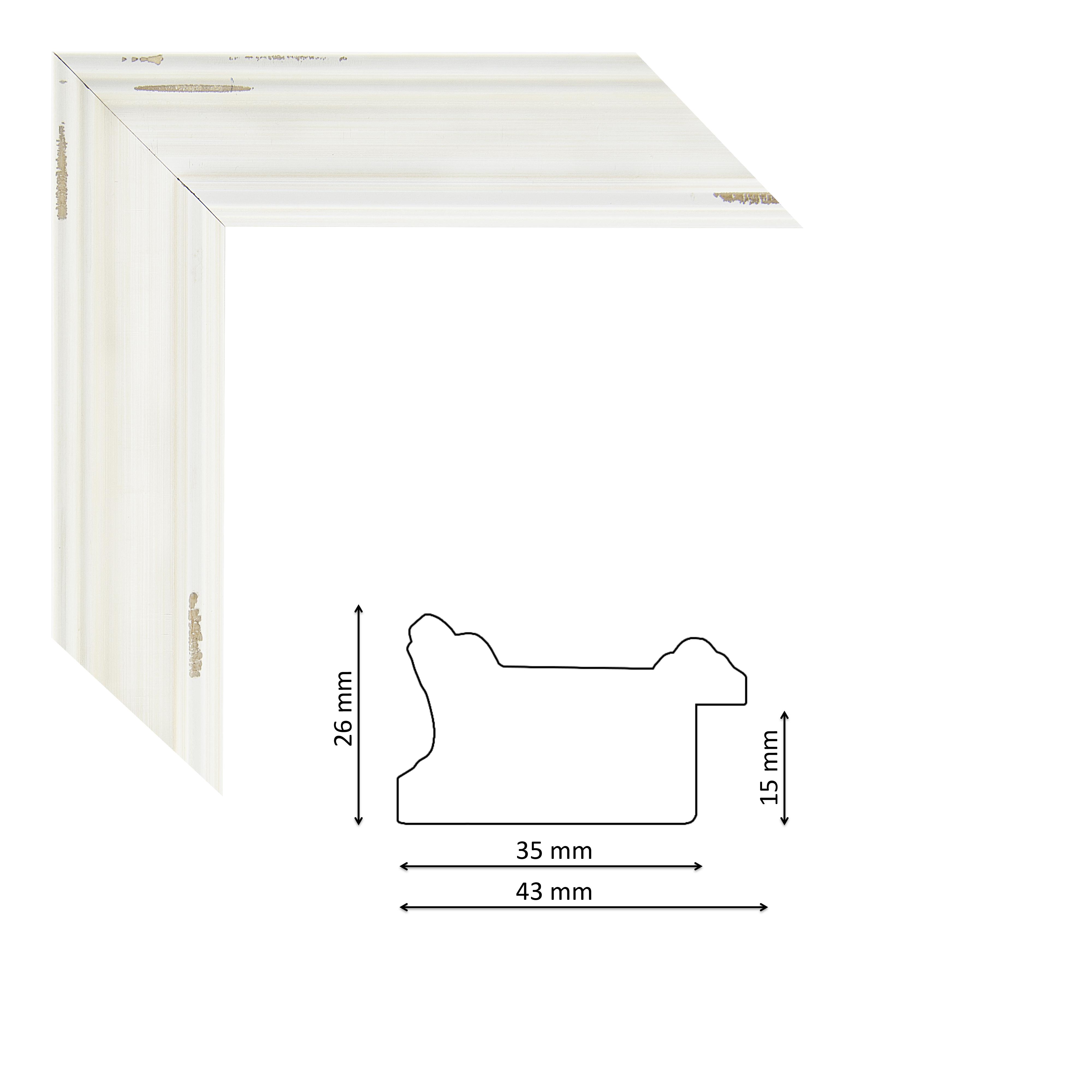 Képkeretléc IM6201-581 Kérdése van? Enyhén profilos spanyol képkeretléc fehér színben, natur visszatörésekkel, trópusi fából.