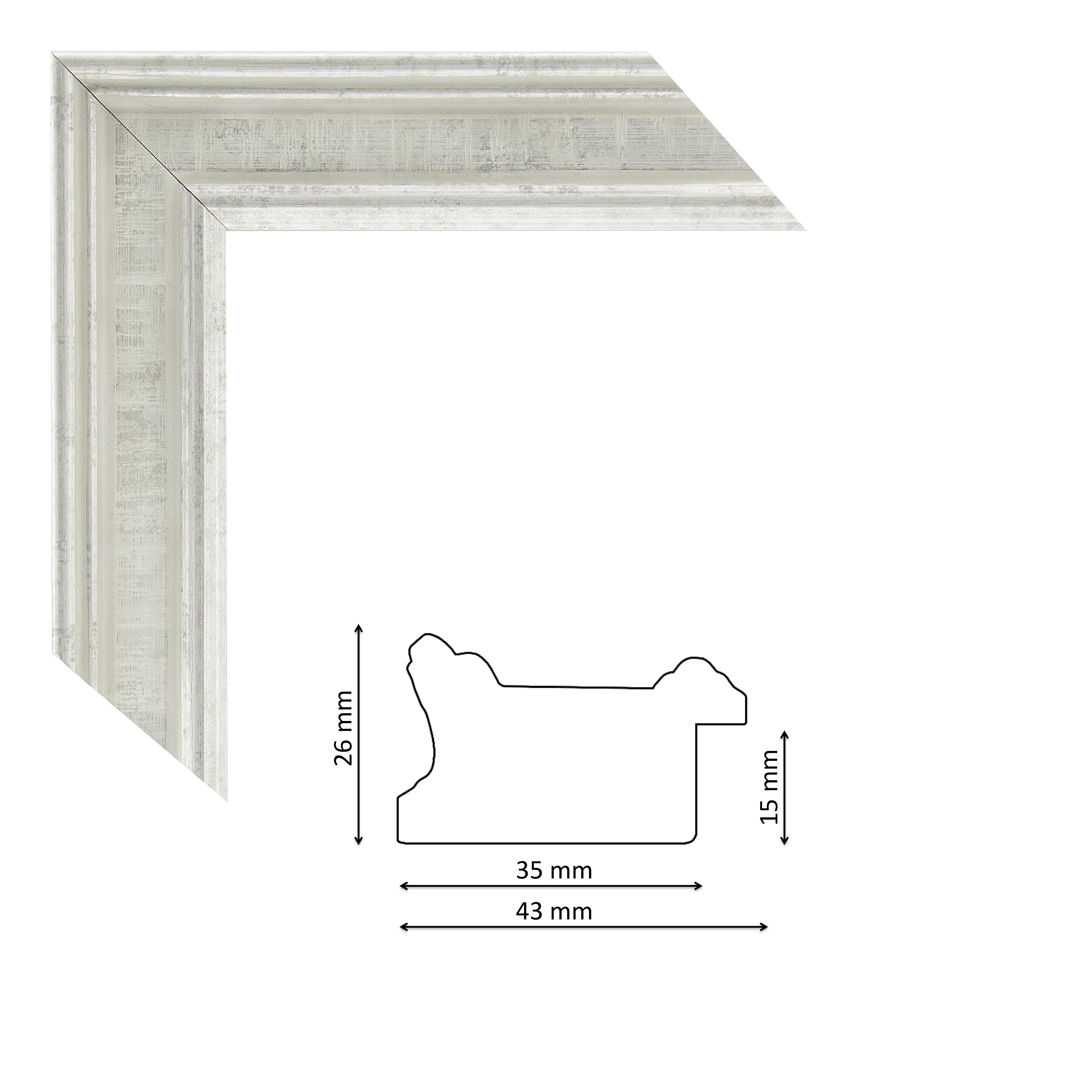 Képkeretléc IM6201-650 Kérdése van? Enyhén profilos spanyol képkeretléc ezüst színben, trópusi fából.