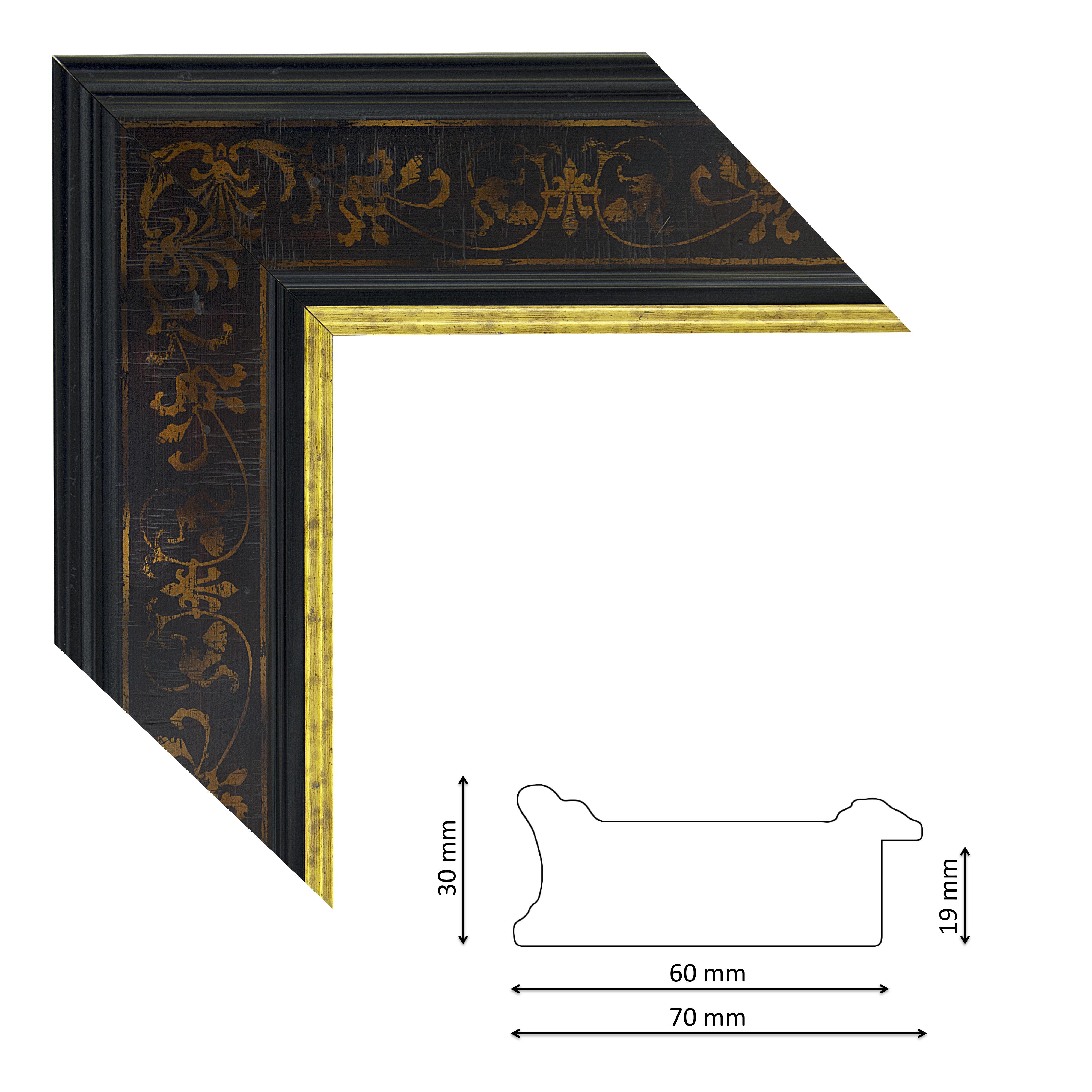 Képkeretléc IM6202-999 Kérdése van? Enyhén profilos spanyol képkeretléc fekete színben, felületén mintával, trópusi fából.