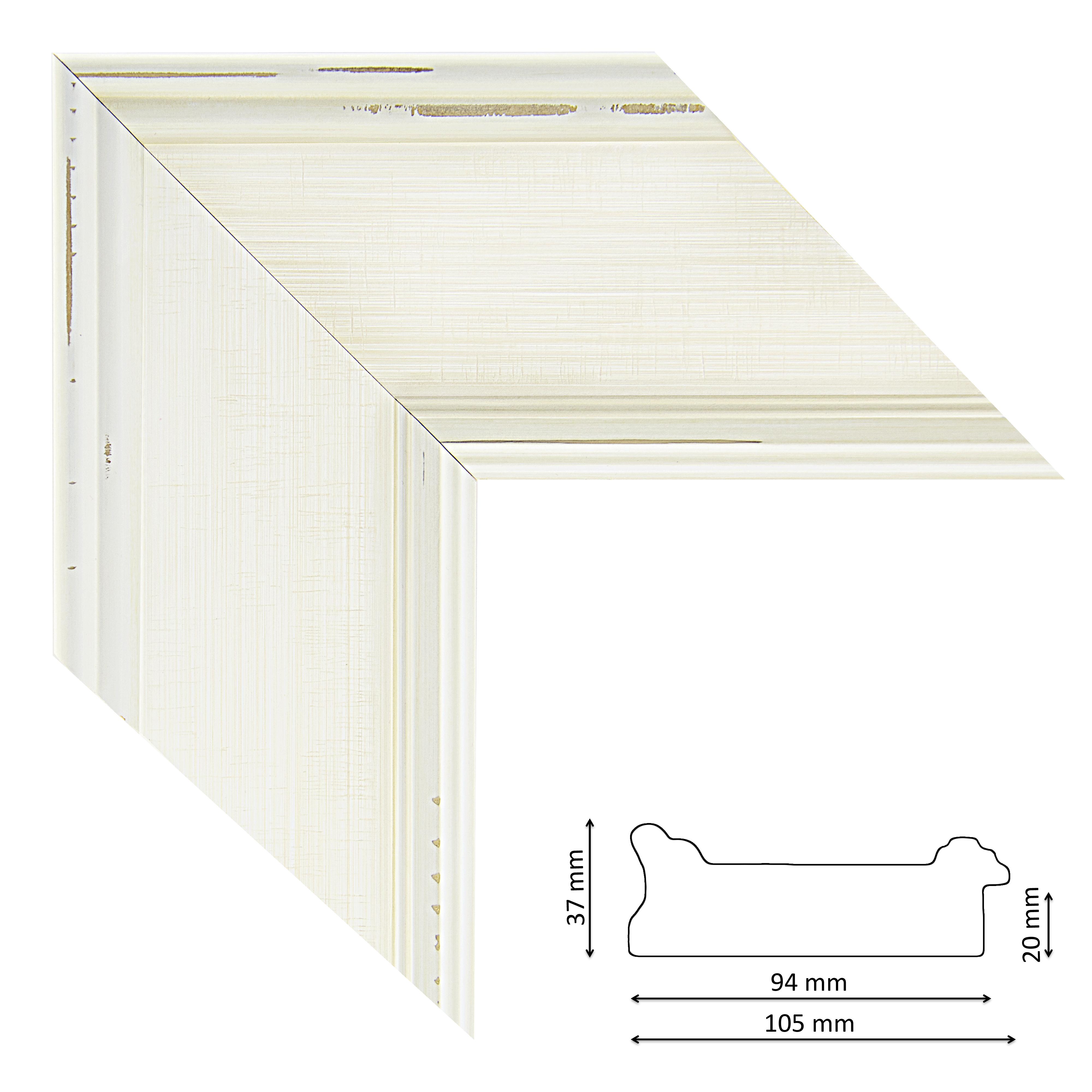 Képkeretléc IM6203-581 Kérdése van? Enyhén profilos spanyol képkeretléc fehér színben, natur visszatörésekkel, trópusi fából.