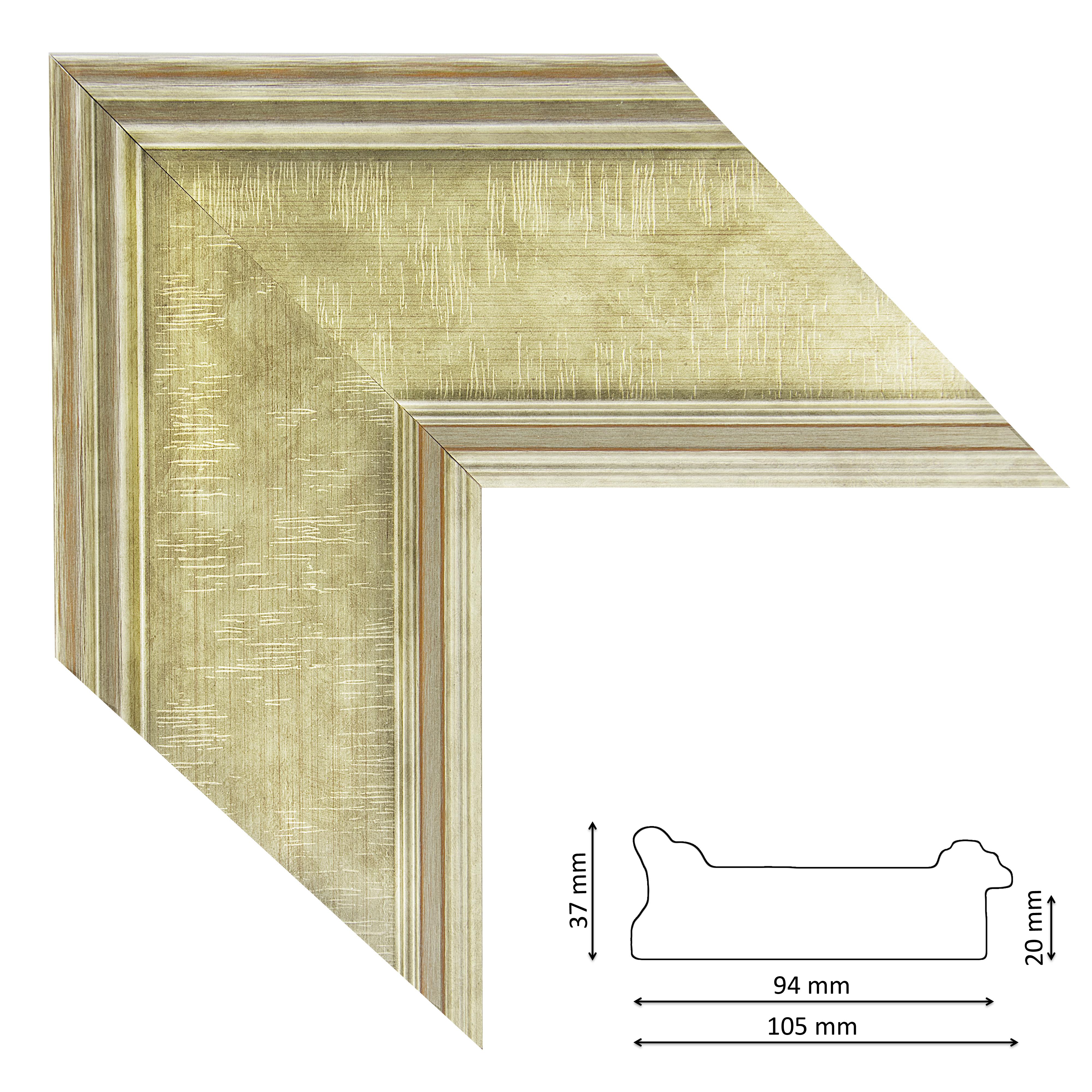 Képkeretléc IM6203-640 Kérdése van? Enyhén profilos spanyol képkeretléc pezsgős-ezüst színben, trópusi fából.