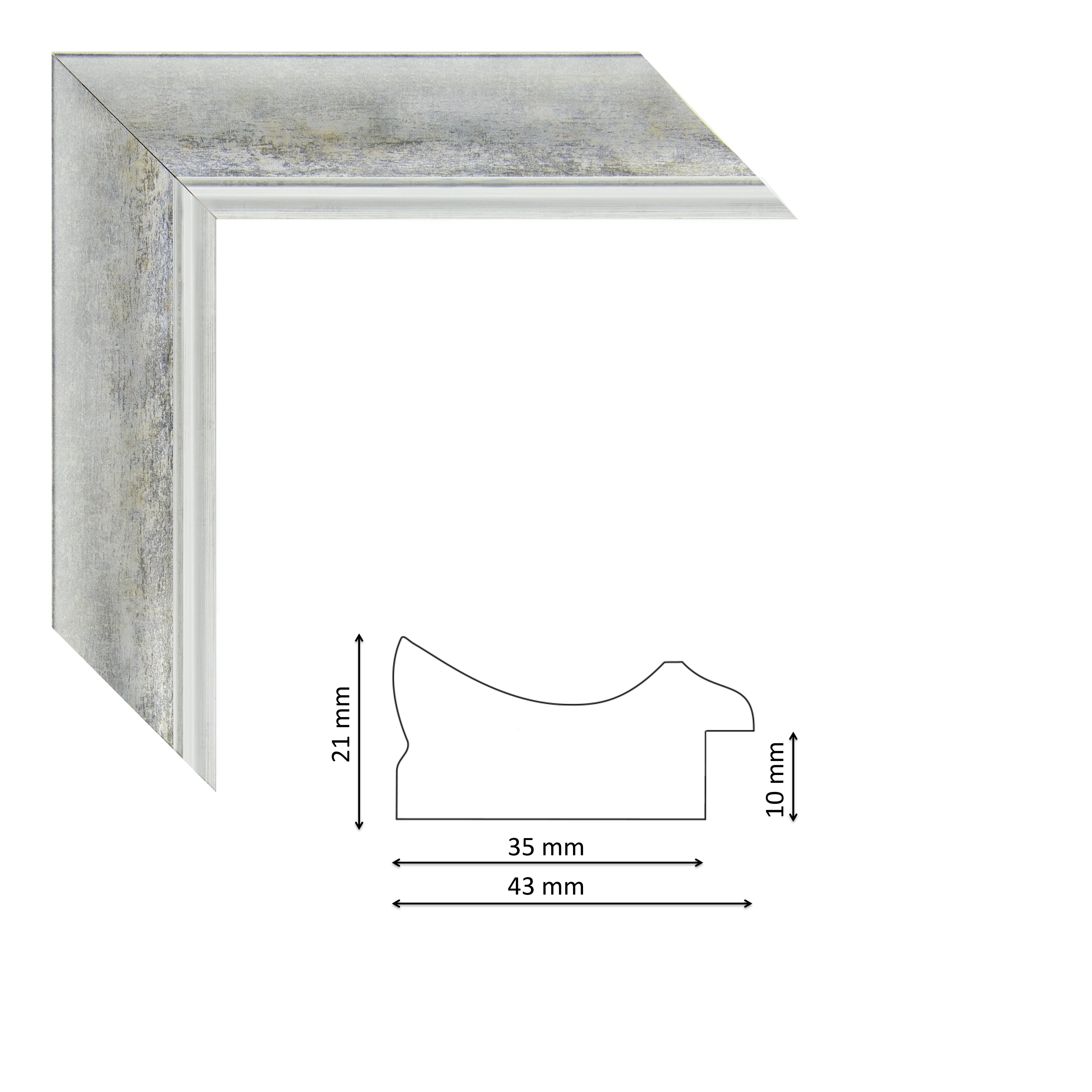 Képkeretléc IM6411-626 Kérdése van? Modern spanyol képkeretléc ezüst színben, ezüst csíkkal, trópusi fából.