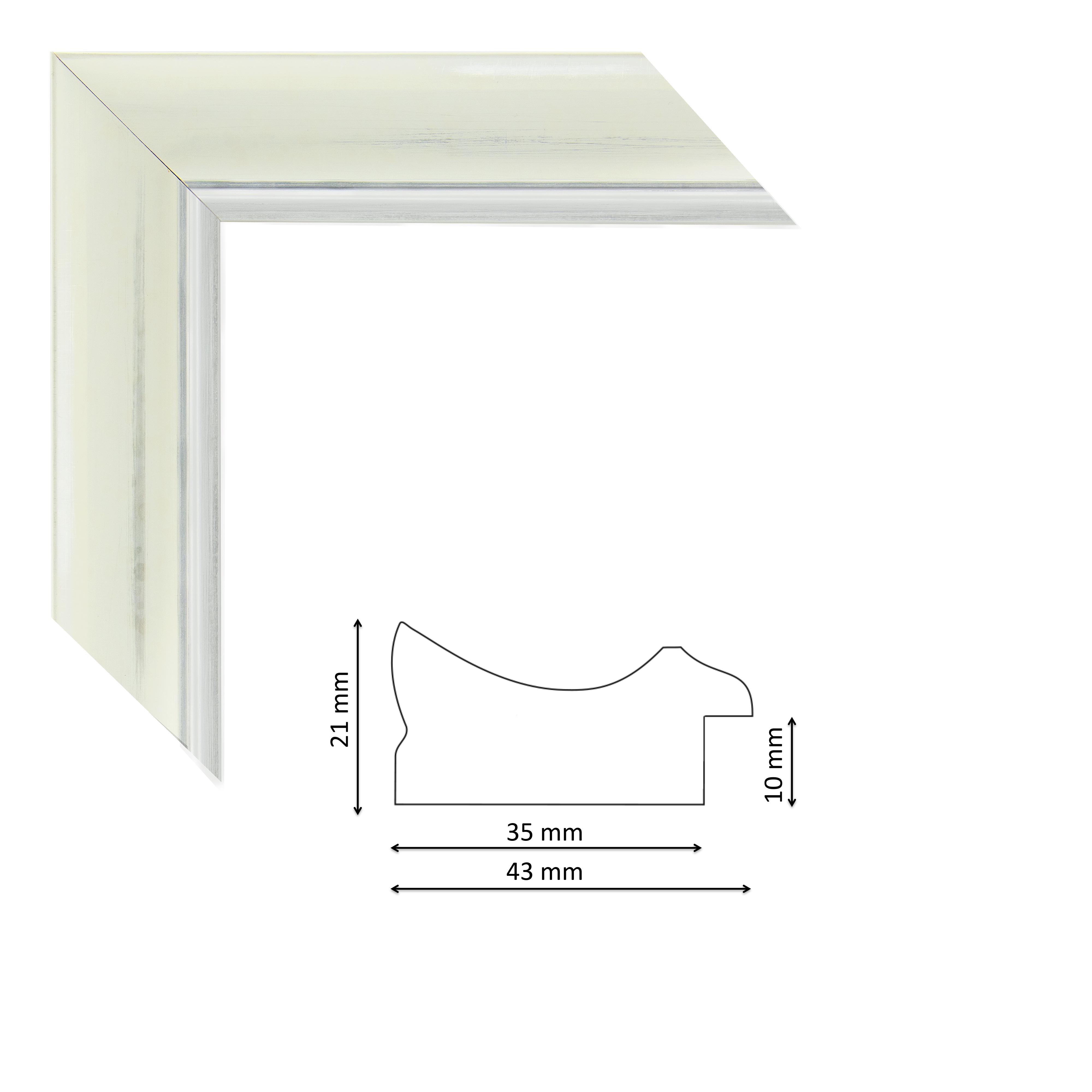 Képkeretléc IM6411-683 Kérdése van? Modern spanyol képkeretléc fehér-ezüst árnyalatú fóliával, ezüst csíkkal, trópusi fából.