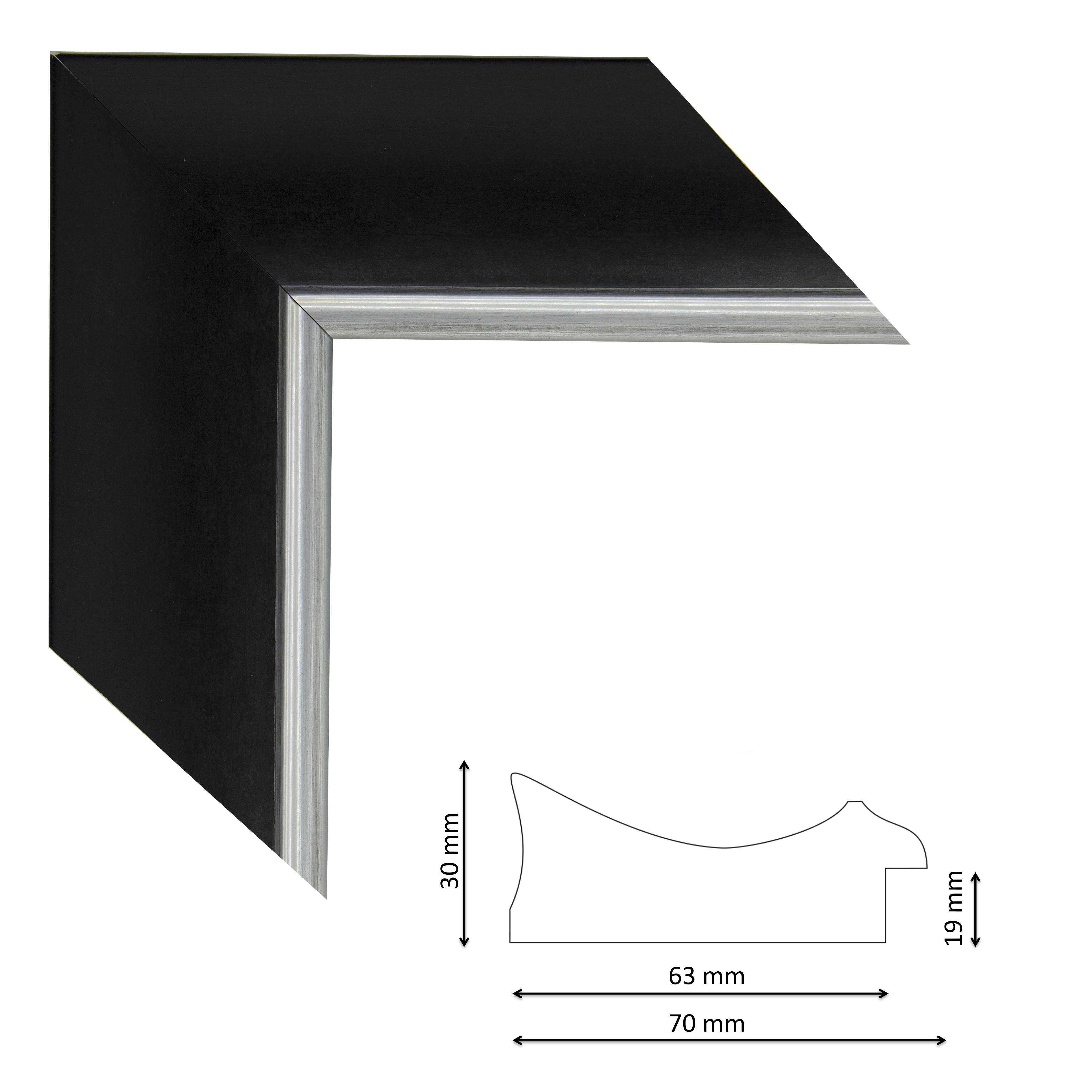 Képkeretléc IM6412-629 Kérdése van? Modern spanyol képkeretléc fekete színben, ezüst csíkkal, trópusi fából.
