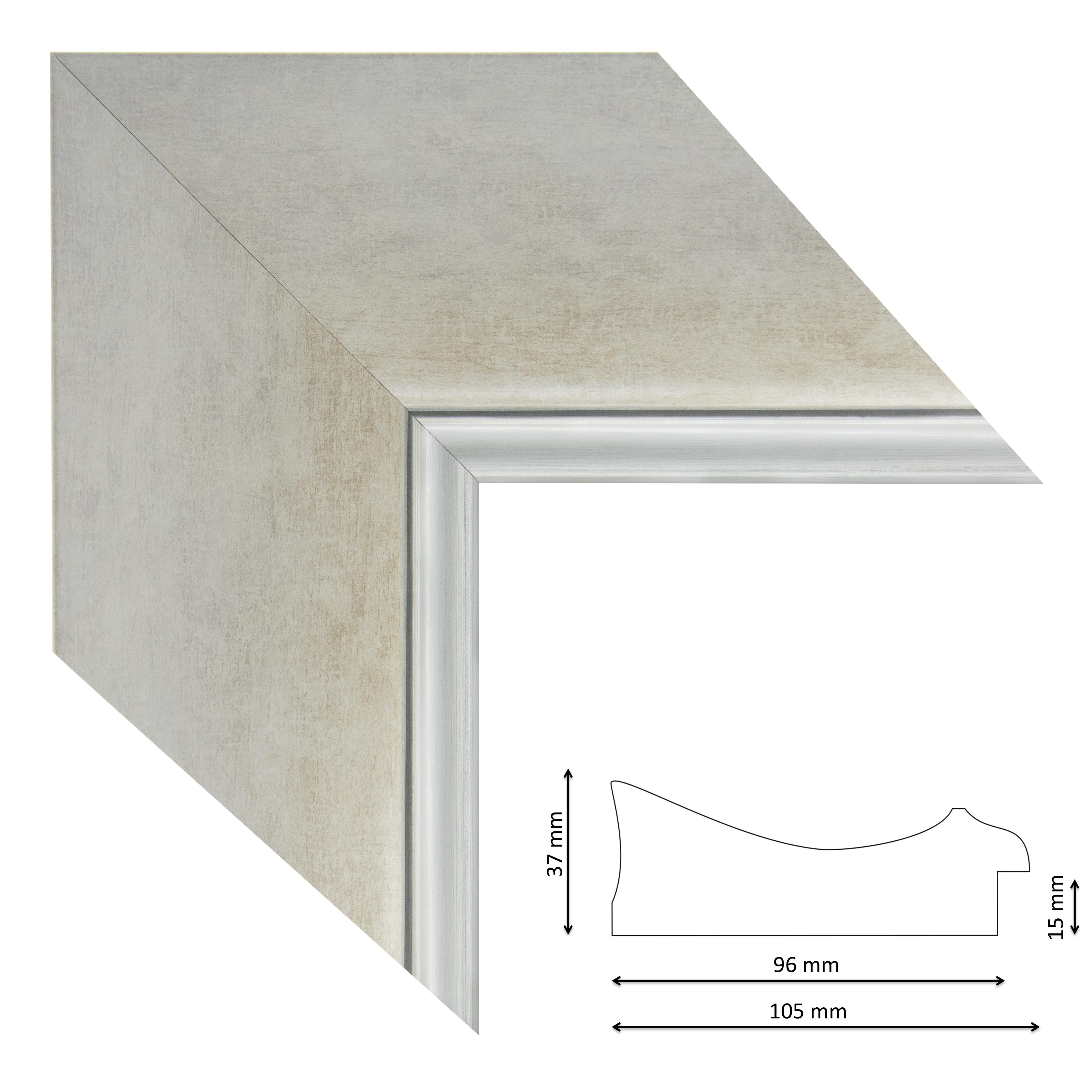 Képkeretléc IM6413-623 Kérdése van? Modern spanyol képkeretléc világos ezüst színben, ezüst csíkkal, trópusi fából.