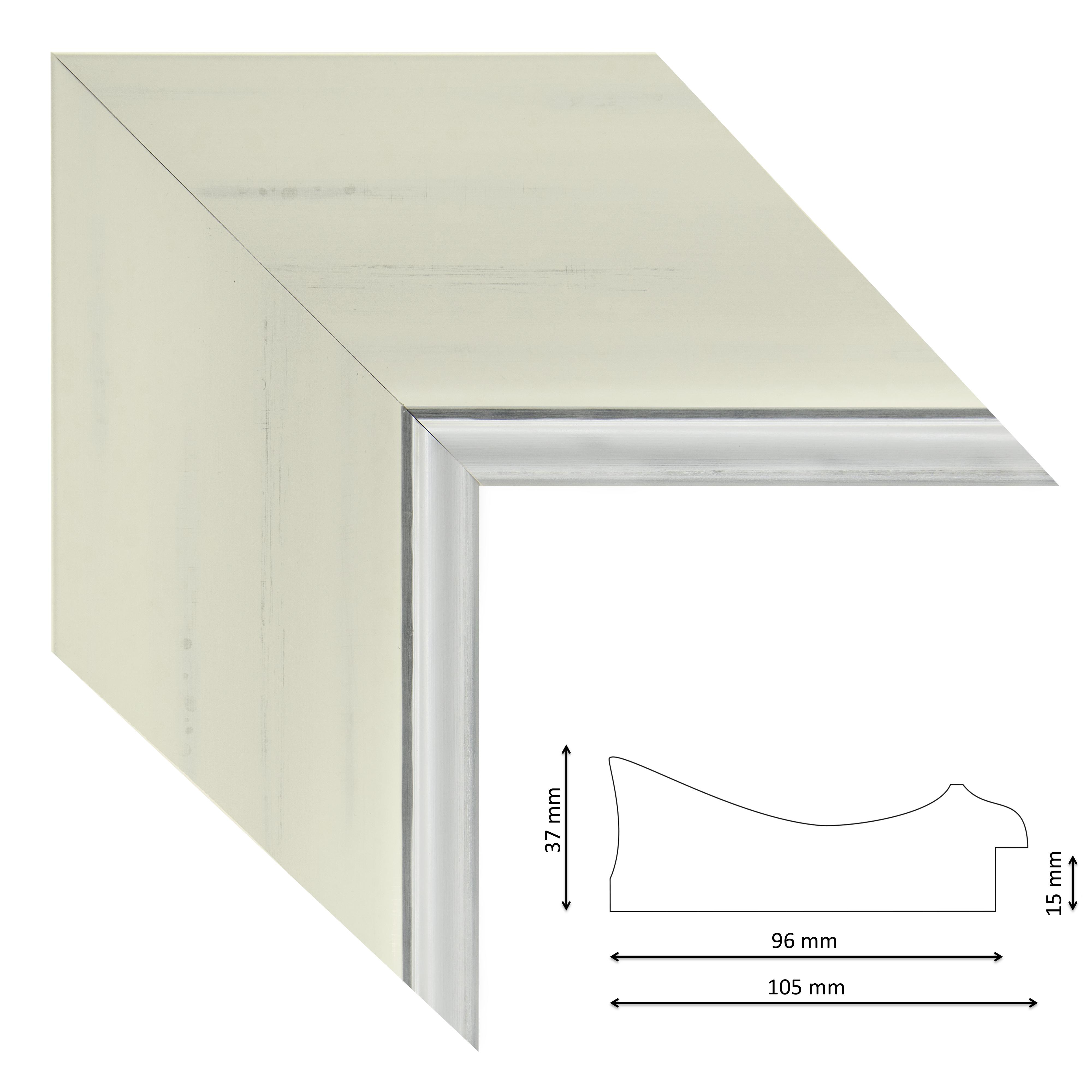 Képkeretléc IM6413-683 Kérdése van? Modern spanyol képkeretléc fehér-ezüst árnyalatú fóliával, ezüst csíkkal, trópusi fából.