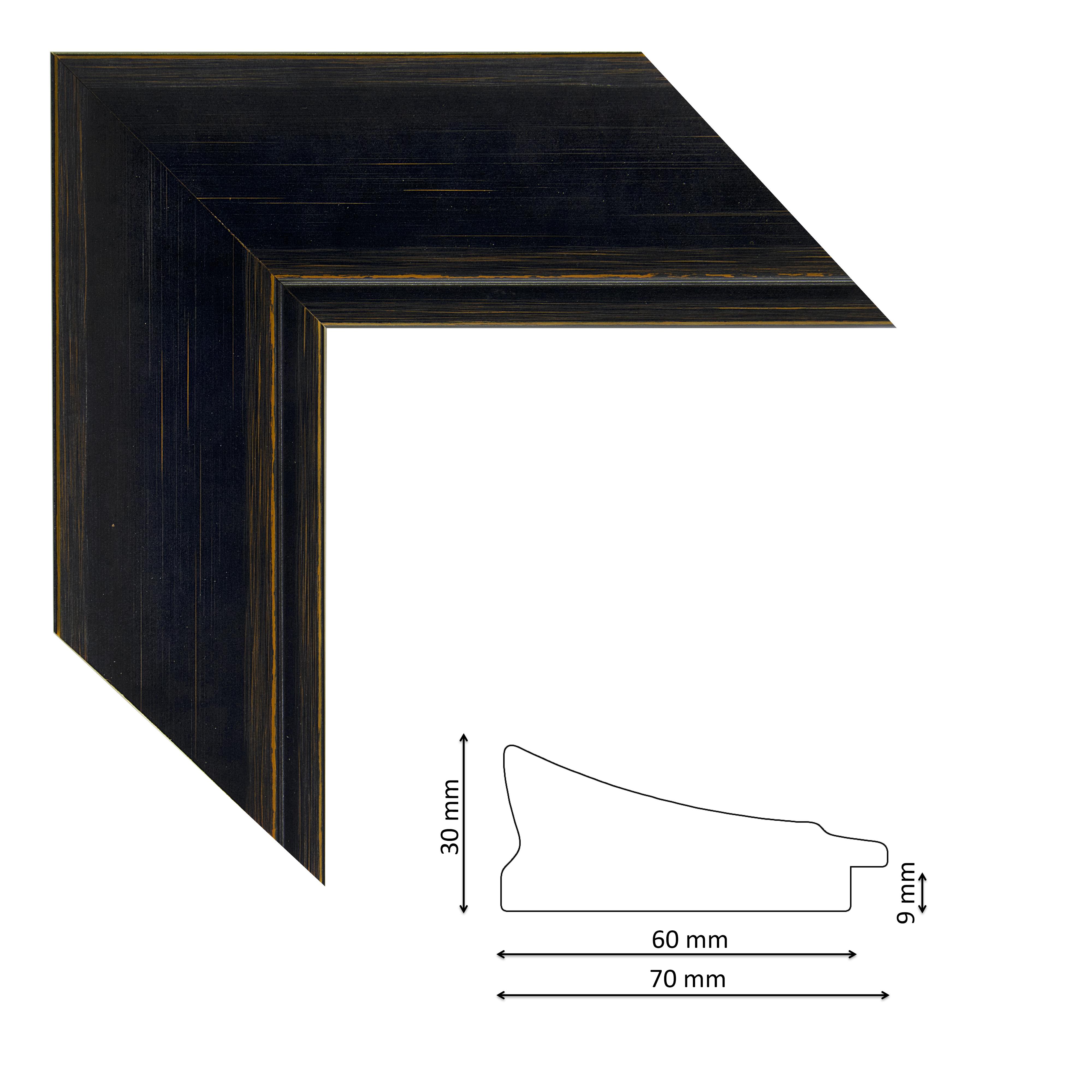 Képkeretléc IM7502-471 Kérdése van? Modern, enyhén befelé mélyülő profilú, spanyol képkeretléc fekete színben, narancsos húzásokkal, trópusi fából.