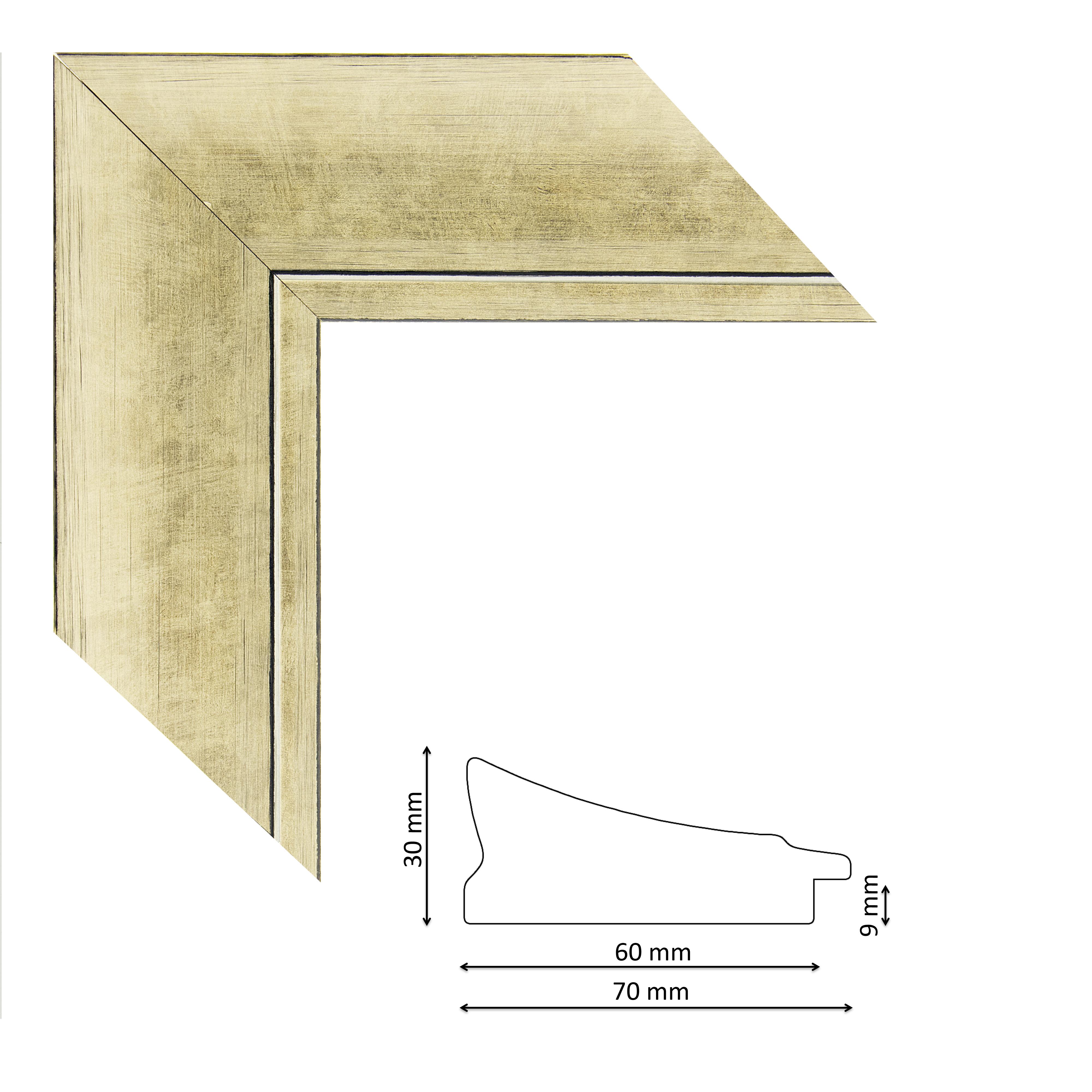 Képkeretléc IM7502-673 Kérdése van? Modern, enyhén befelé mélyülő profilú, spanyol képkeretléc pezsgős-arany színben, trópusi fából.