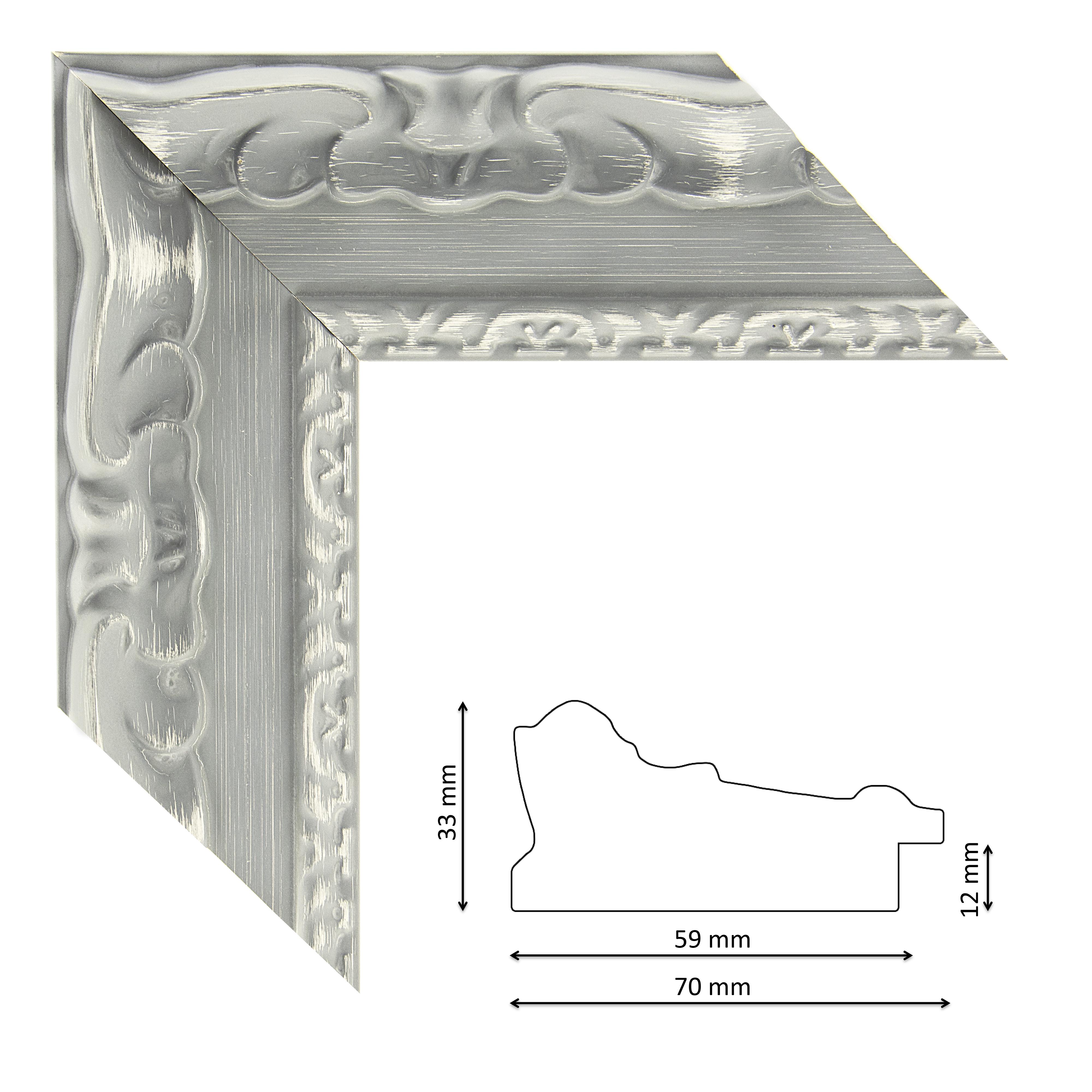 Képkeretléc IM7532-573 Kérdése van? Faragott mintás spanyol képkeretléc belül vékony mintasorral, kékes-szürke színben, trópusi fából.