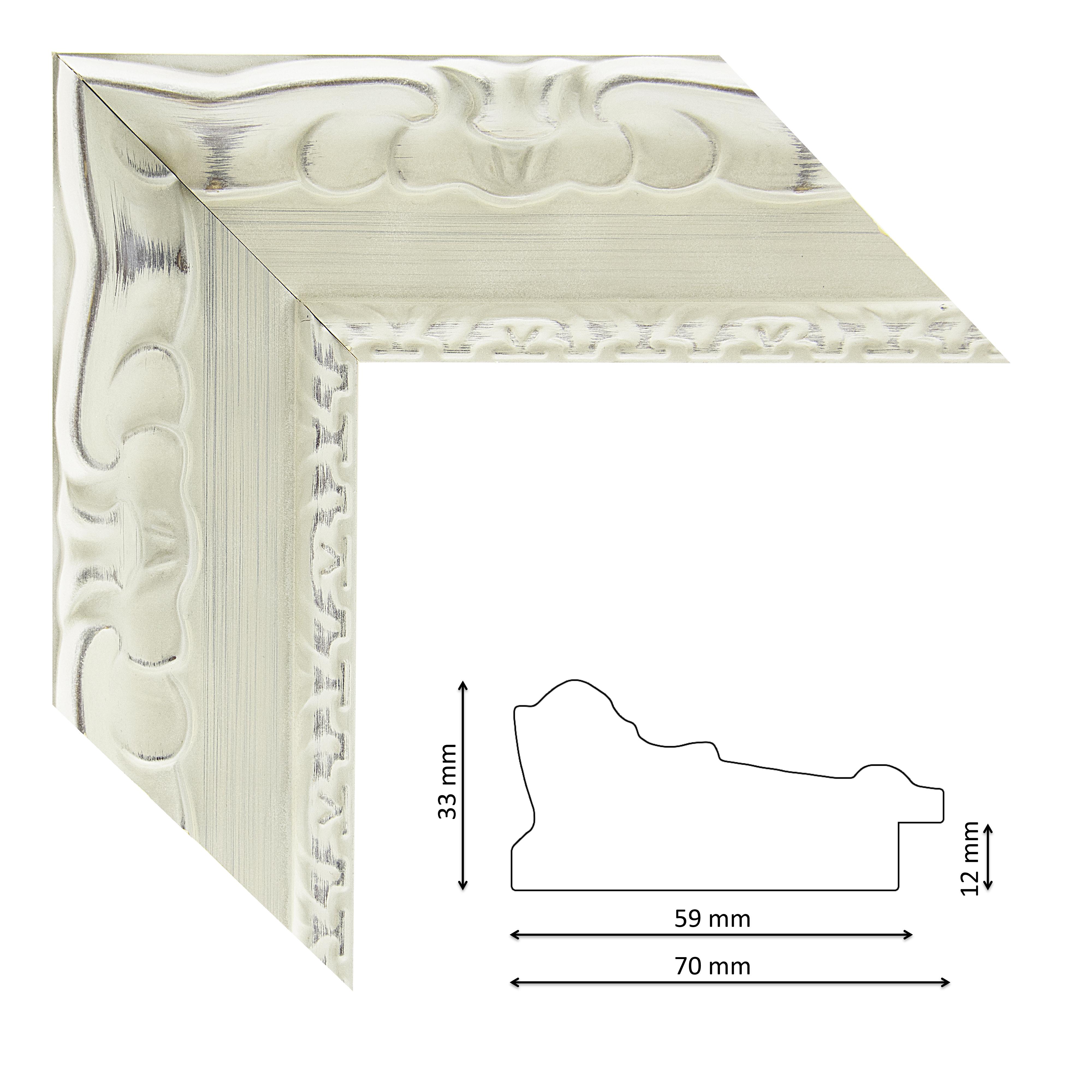 Képkeretléc IM7532-585 Kérdése van? Faragott mintás spanyol képkeretléc belül vékony mintasorral, vajszínes festéssel, natur visszatörésekkel, trópusi fából.