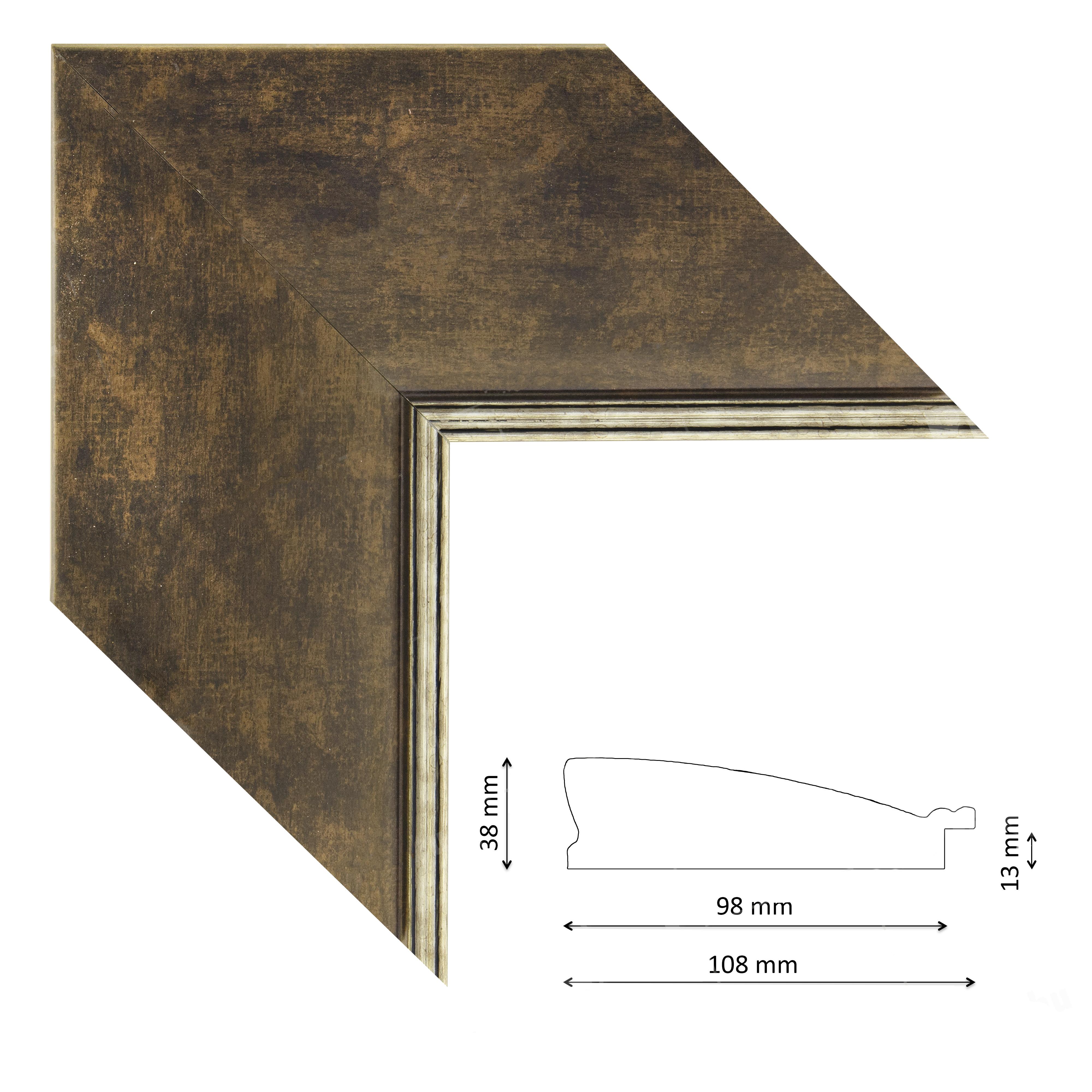 Képkeretléc IM7803-476 Kérdése van? Modern, enyhén domború spanyol képkeretléc barna színben, ezüst belső csíkkal, trópusi fából.
