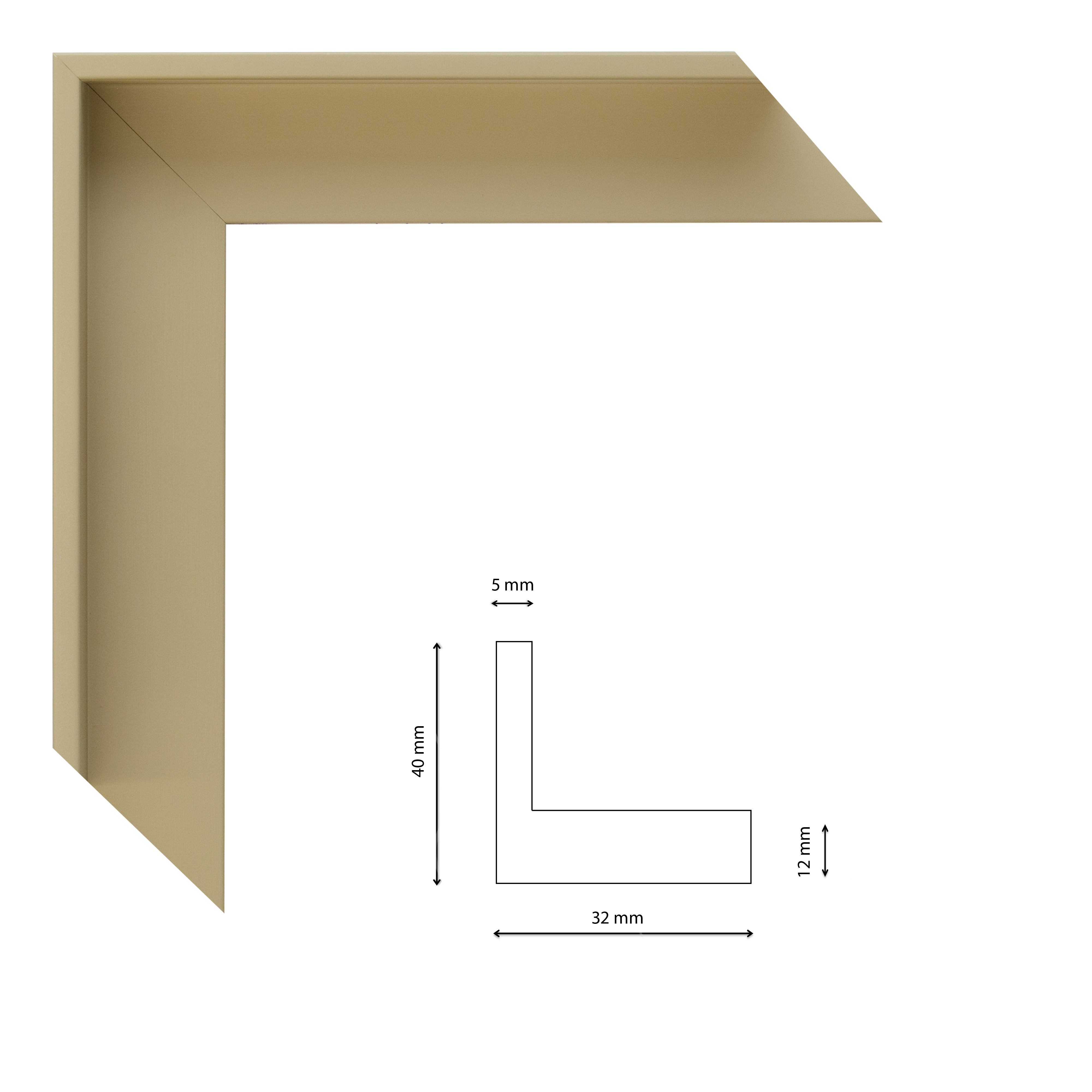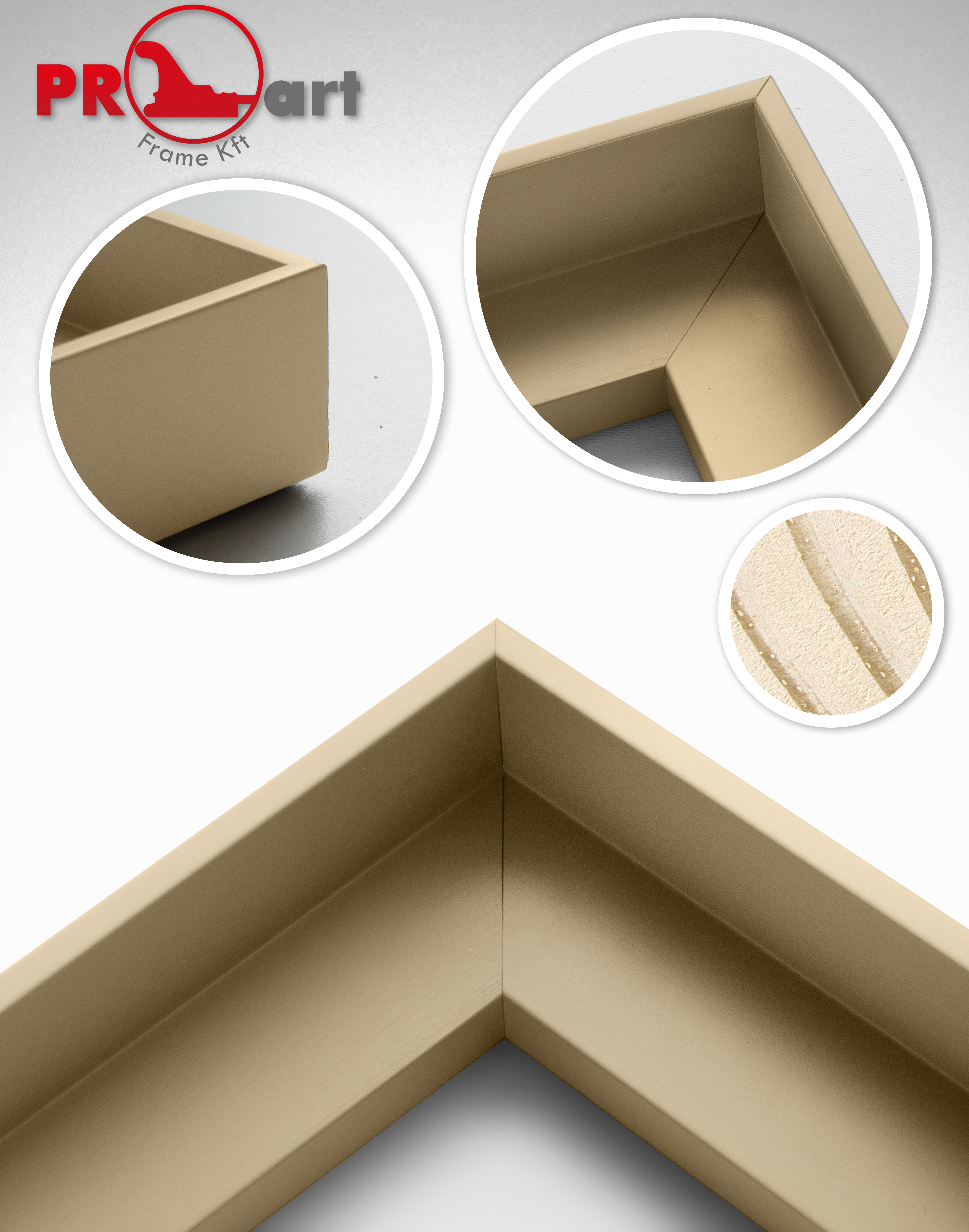 Homokszínű "L" - alakú kiállító keret, vékony éllel.
