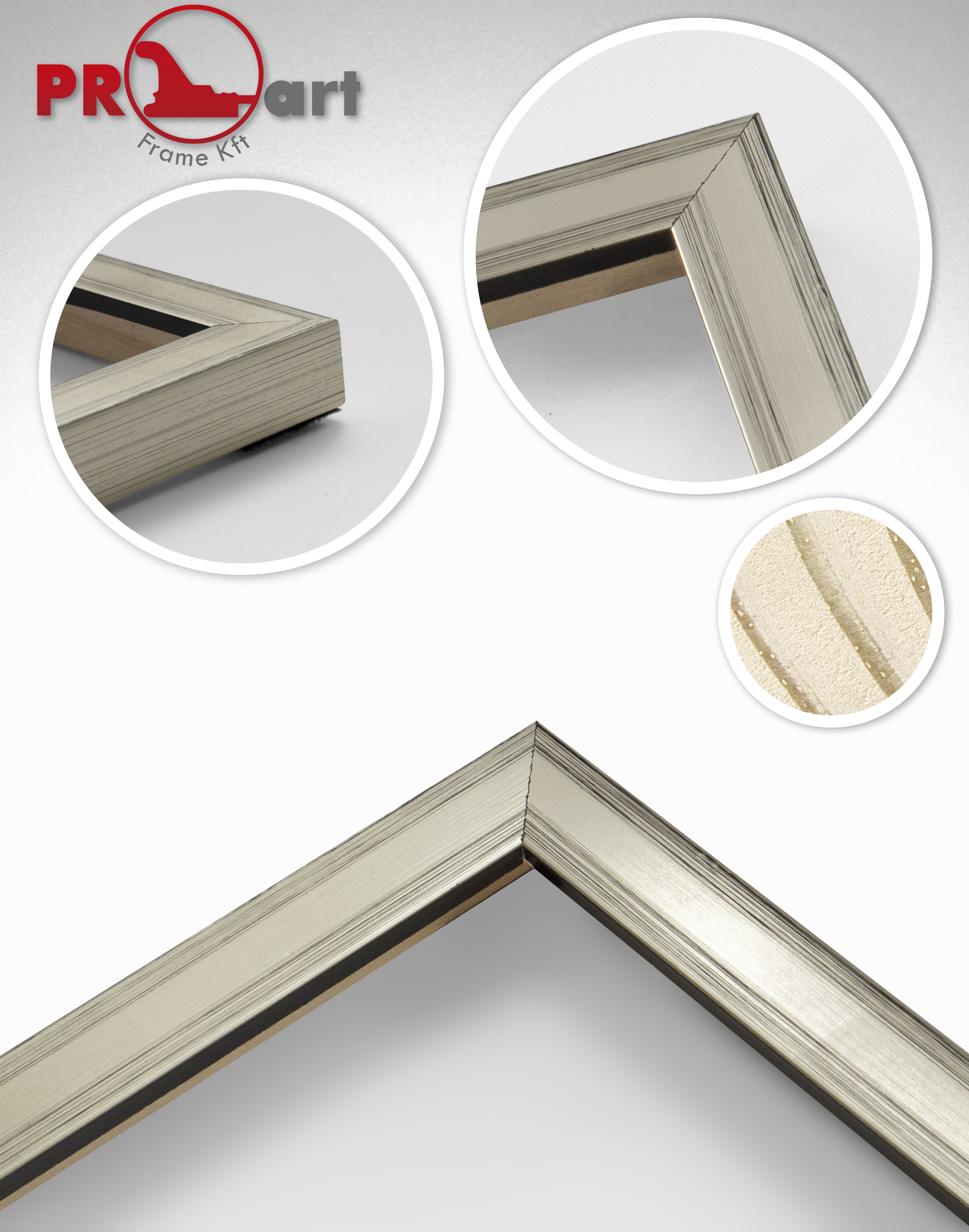 Keskeny, modern képkeretléc pezsgős színben, feketés húzásokkal.