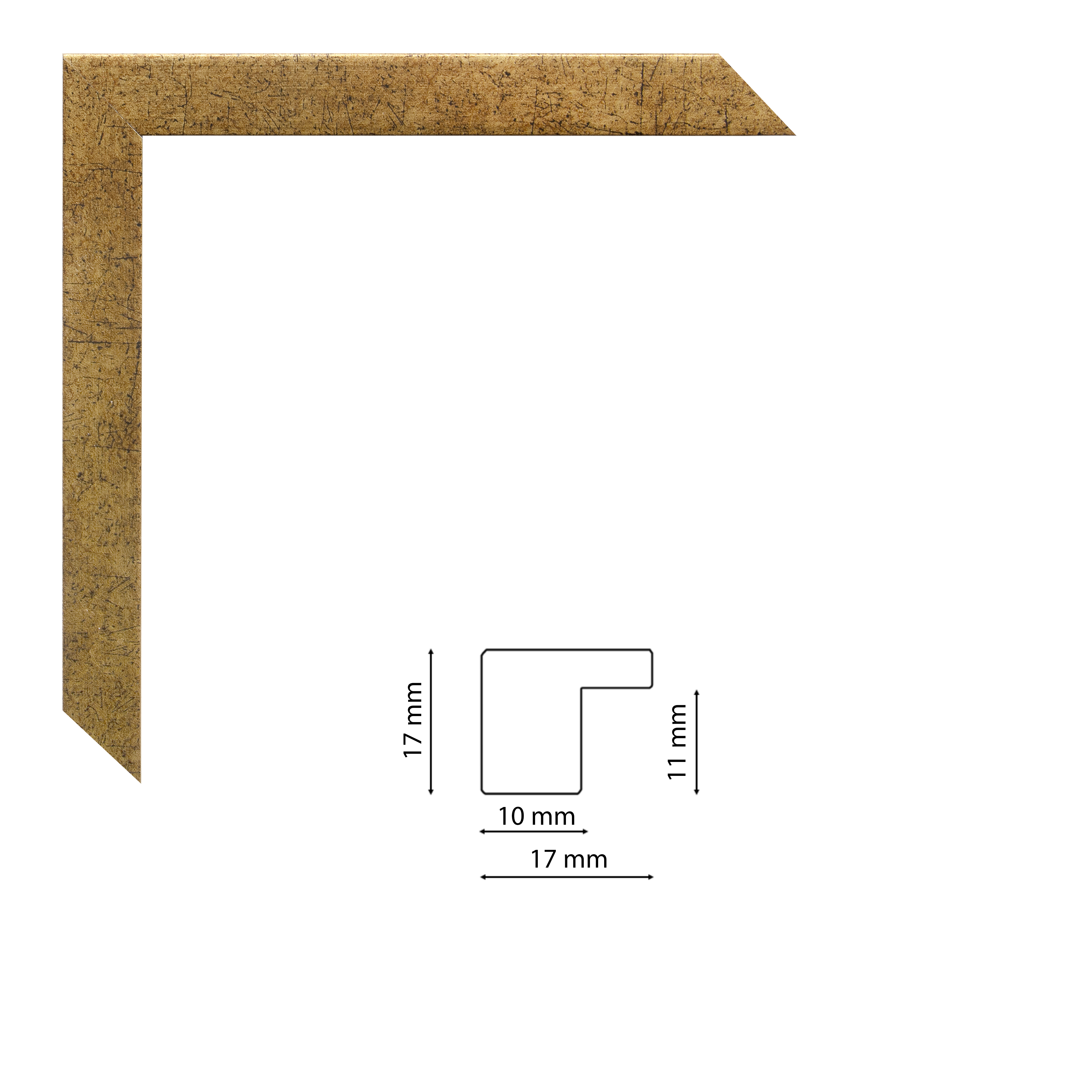 Keskeny, modern képkeretléc arany színben, feketés kopásokkal.