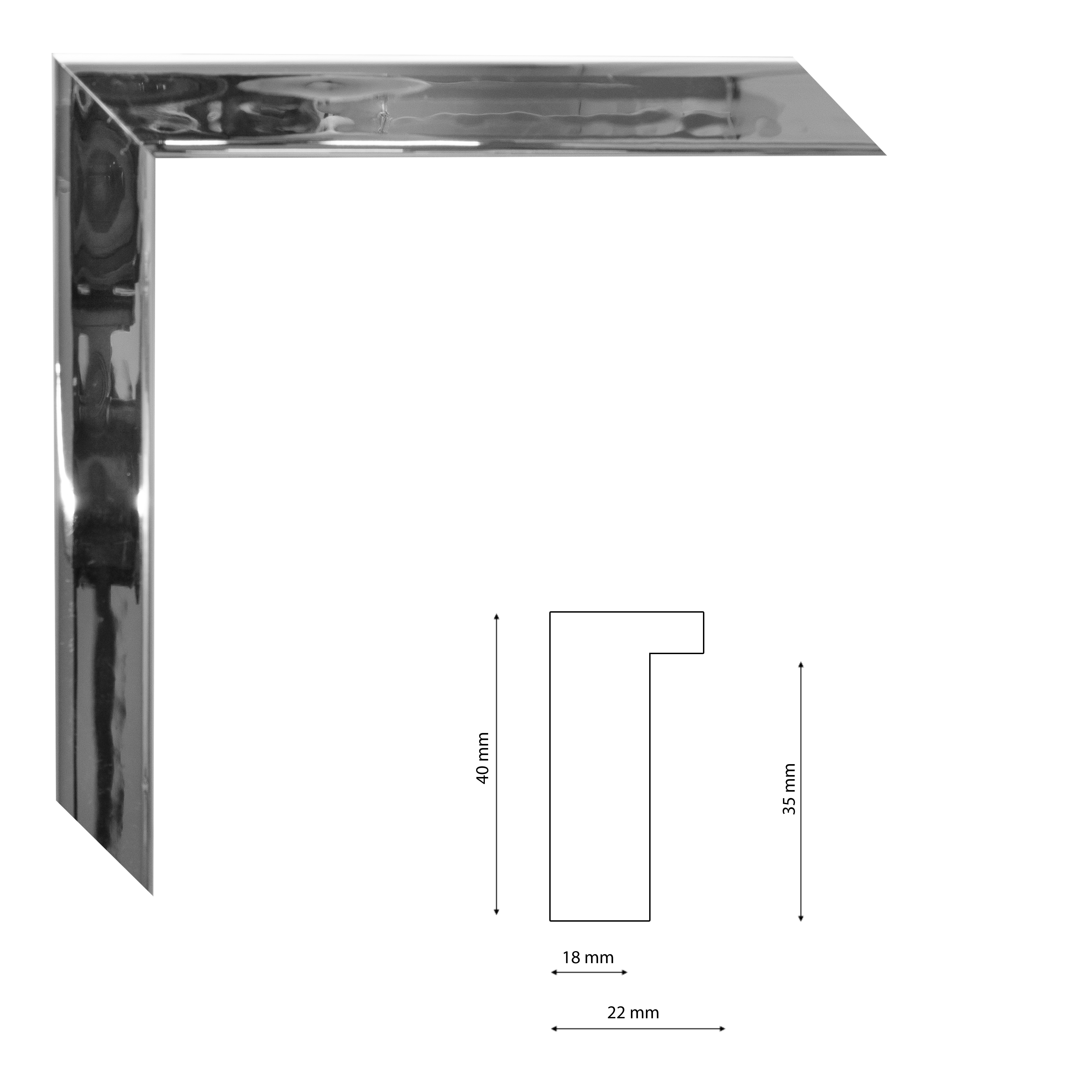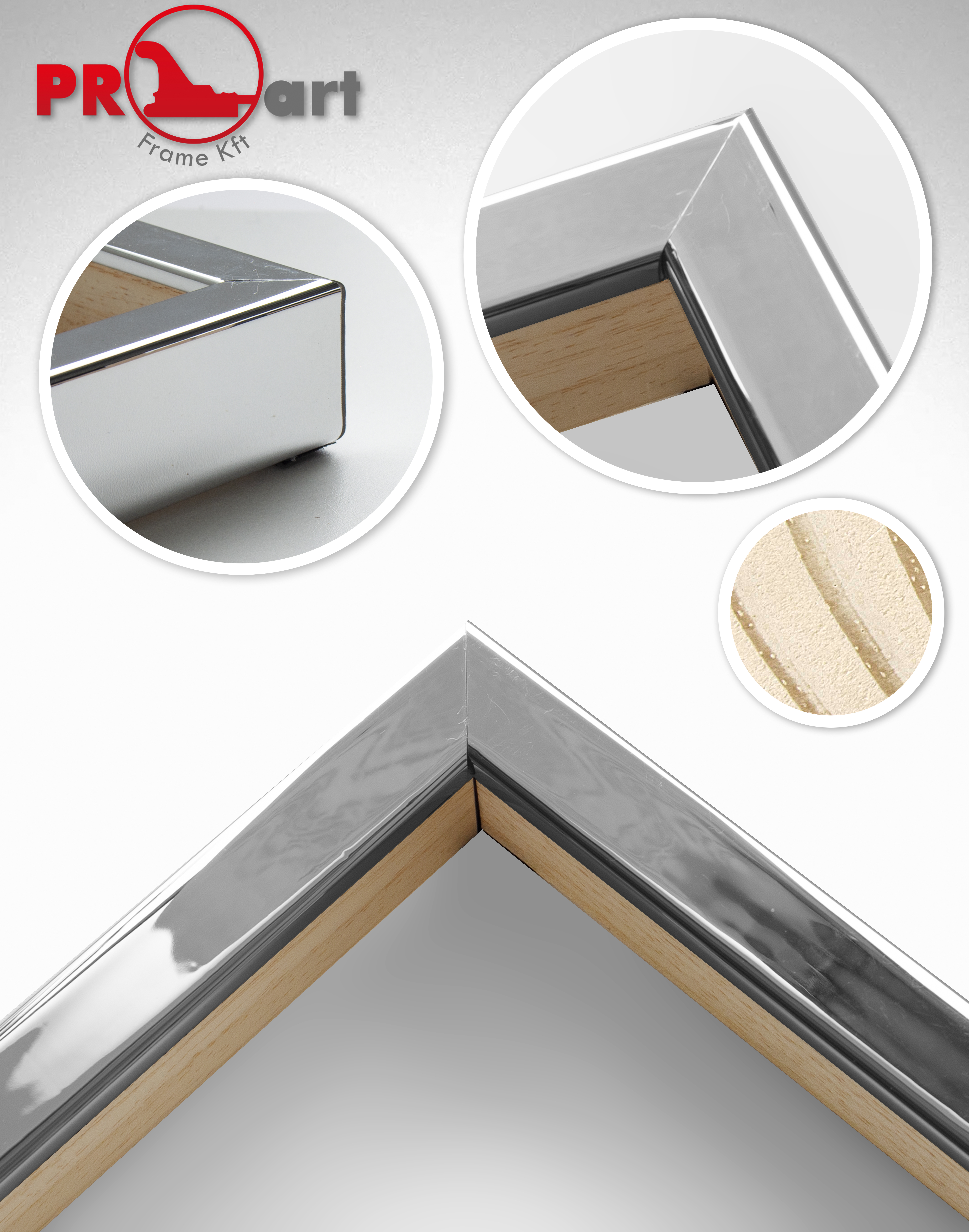 Mélyfalcú, lakk felületű fa képkeretléc ezüst színben.