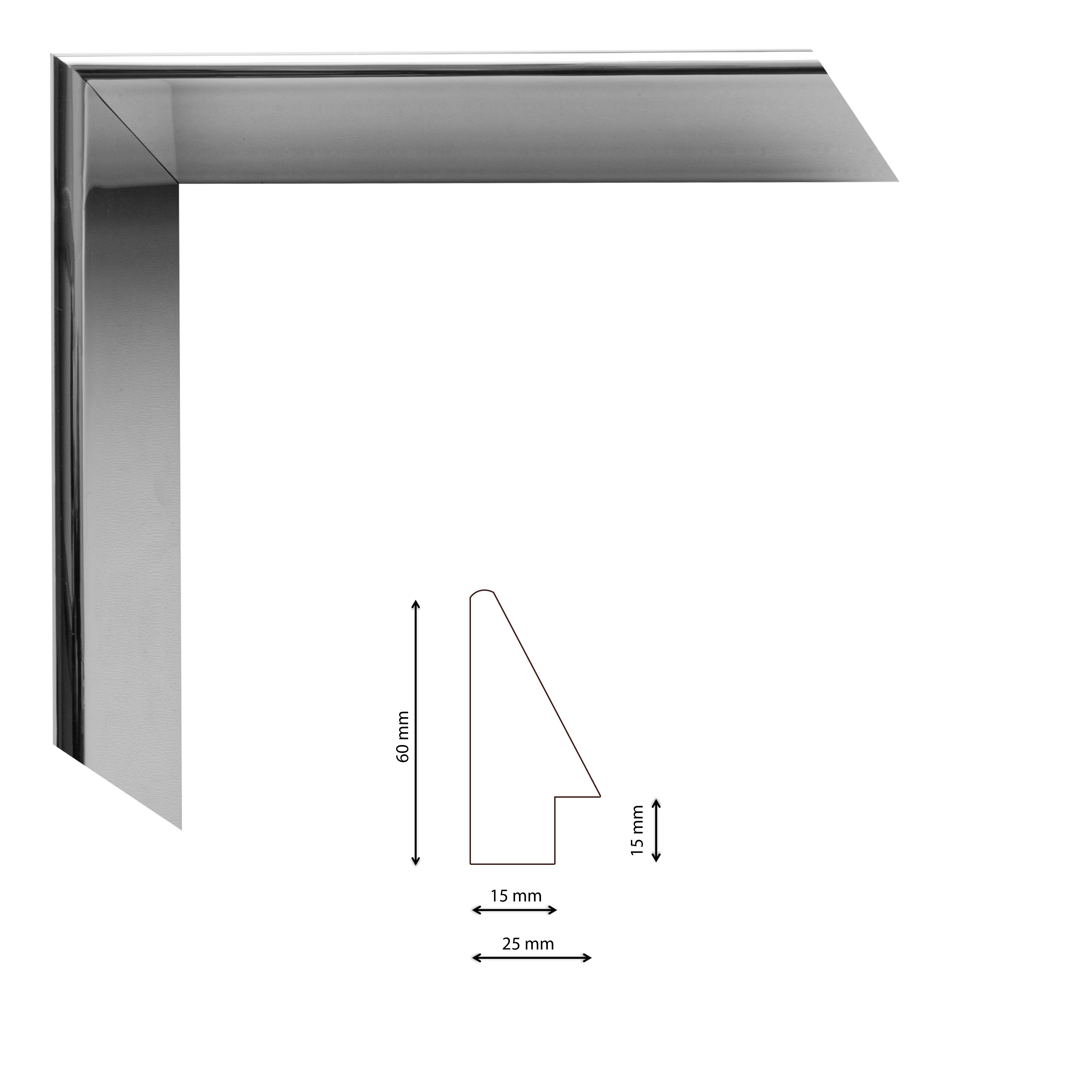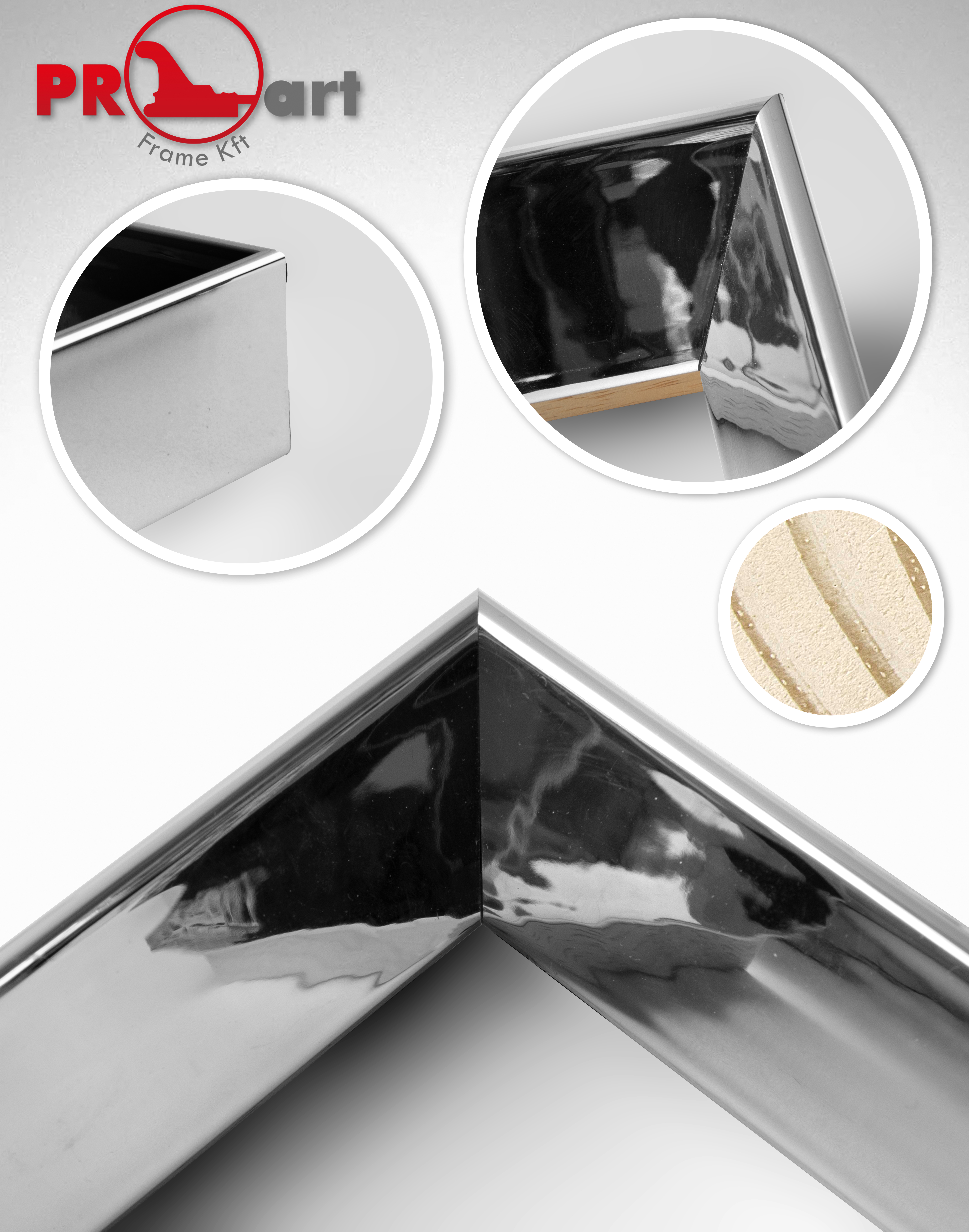 Tükör hatású, fényes felületű ezüst képkeretléc.