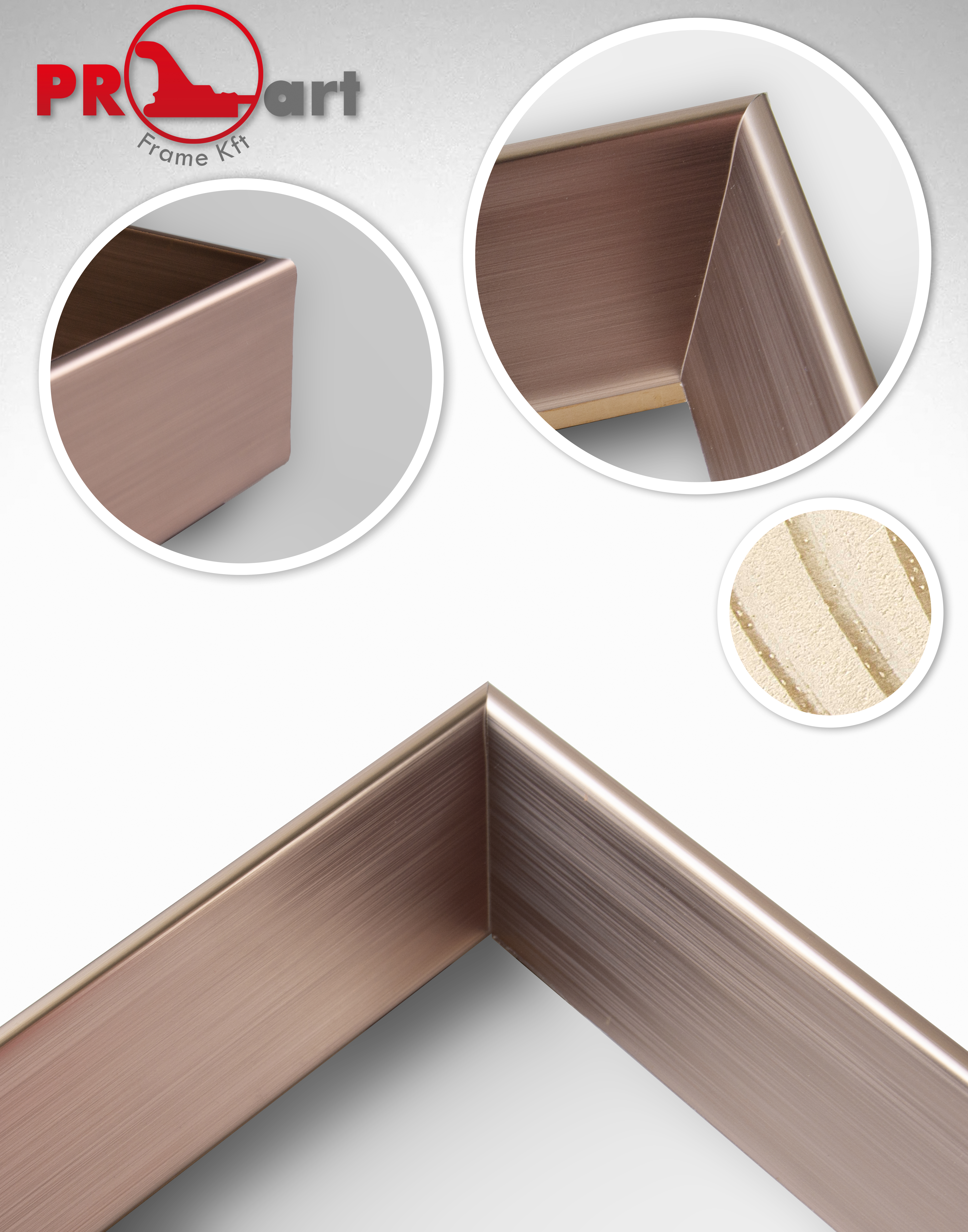 Metálos hatású képkeretléc rosé arany színben, fenyőből.