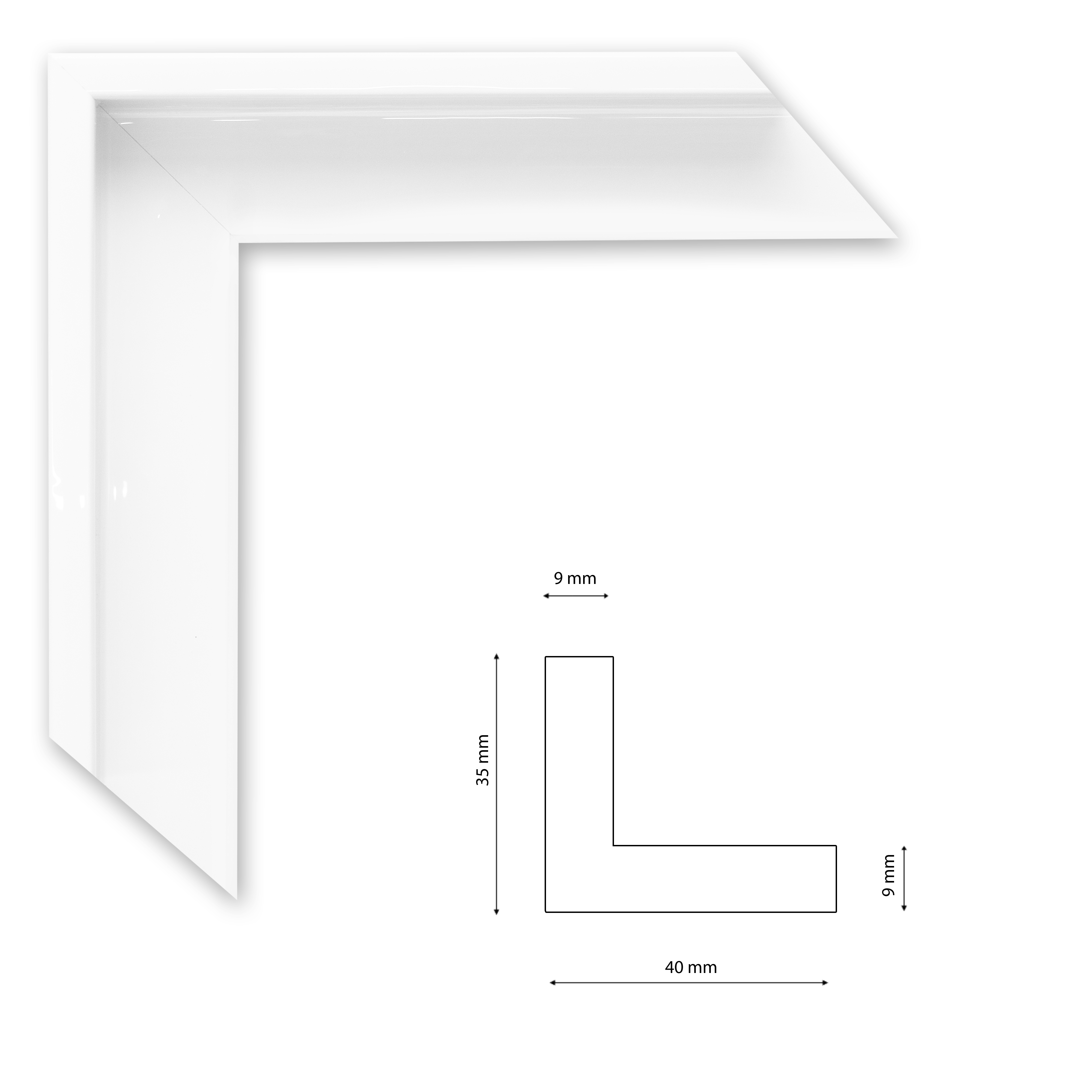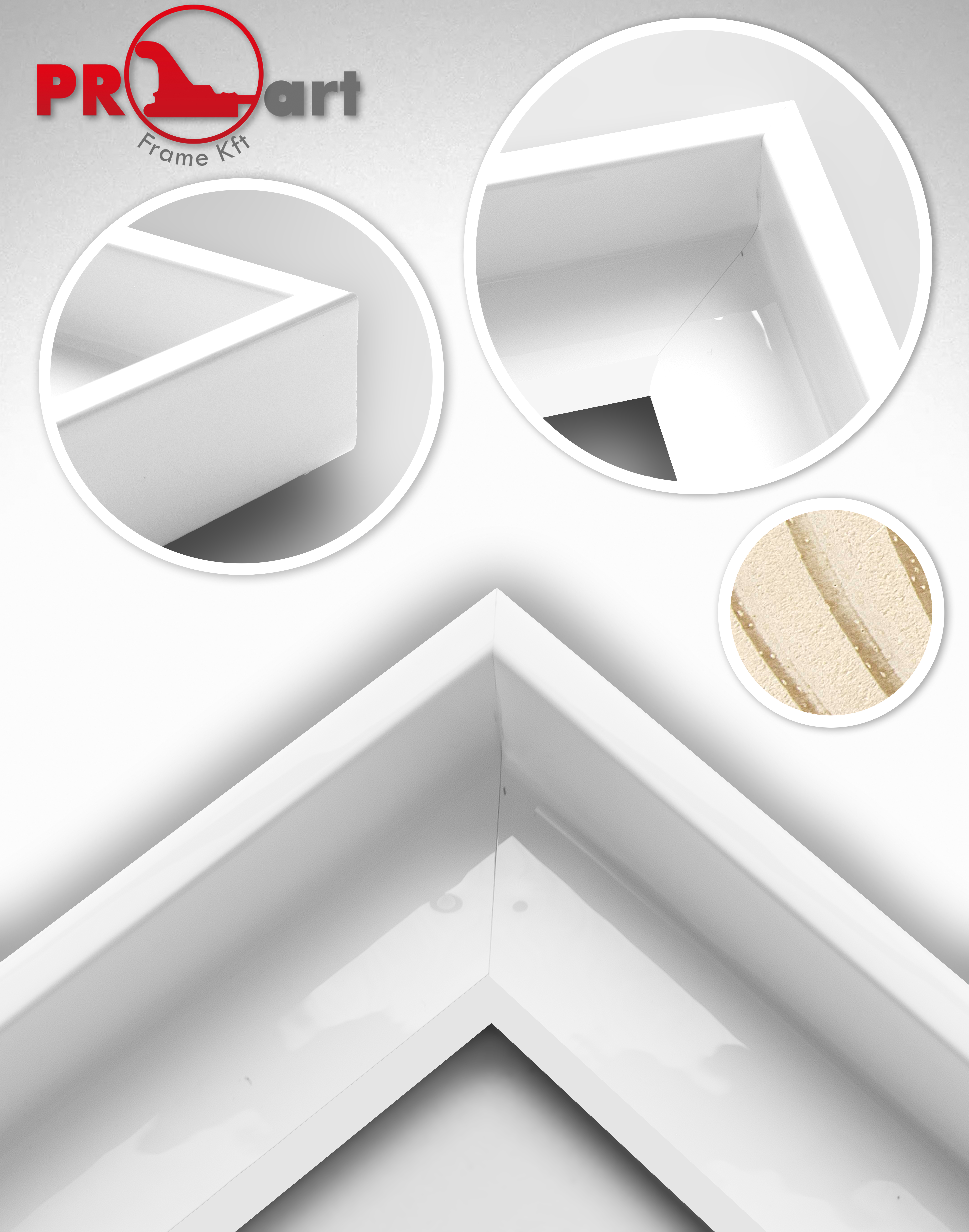 Lakkozott felületű fehér színű "L" alakú kiállító keret