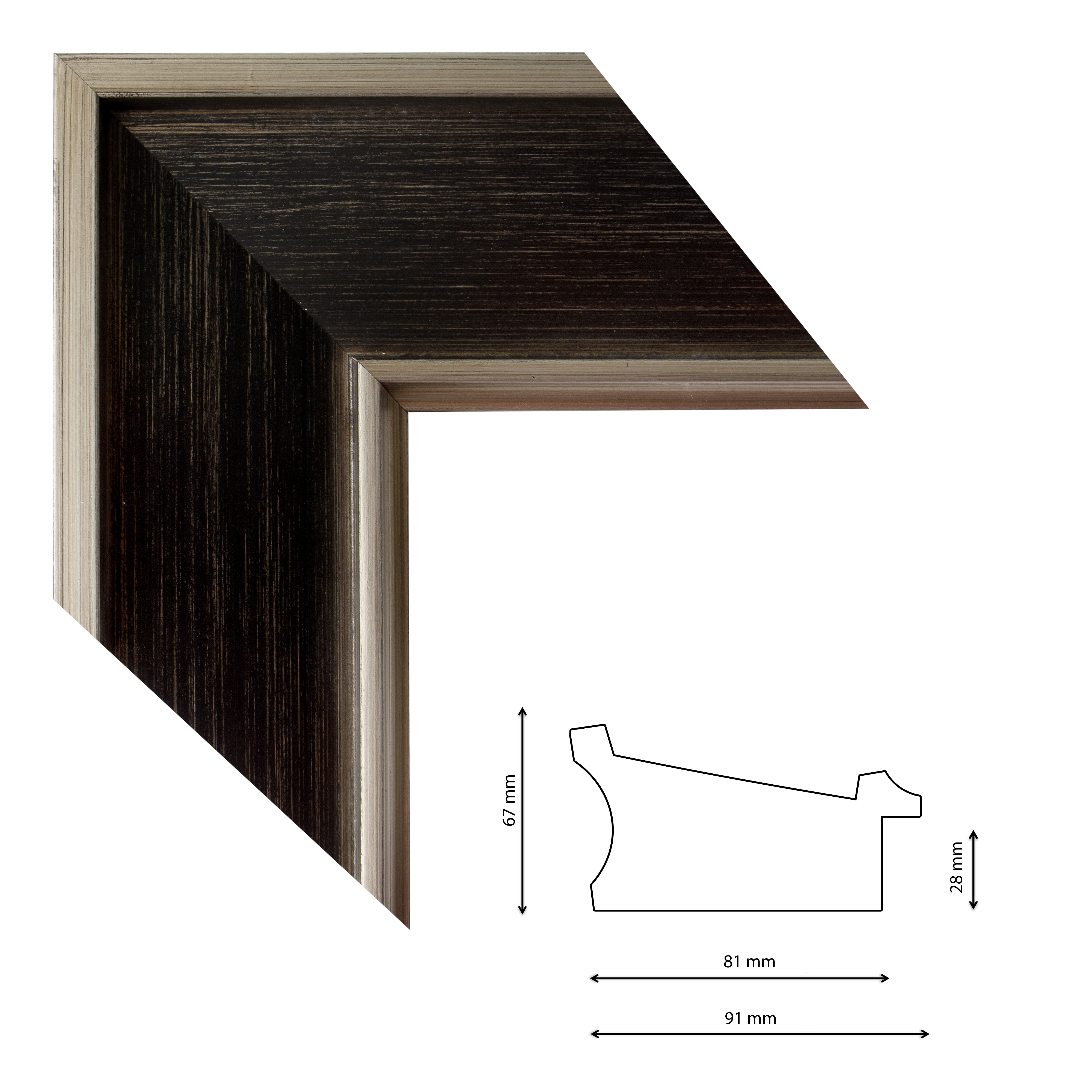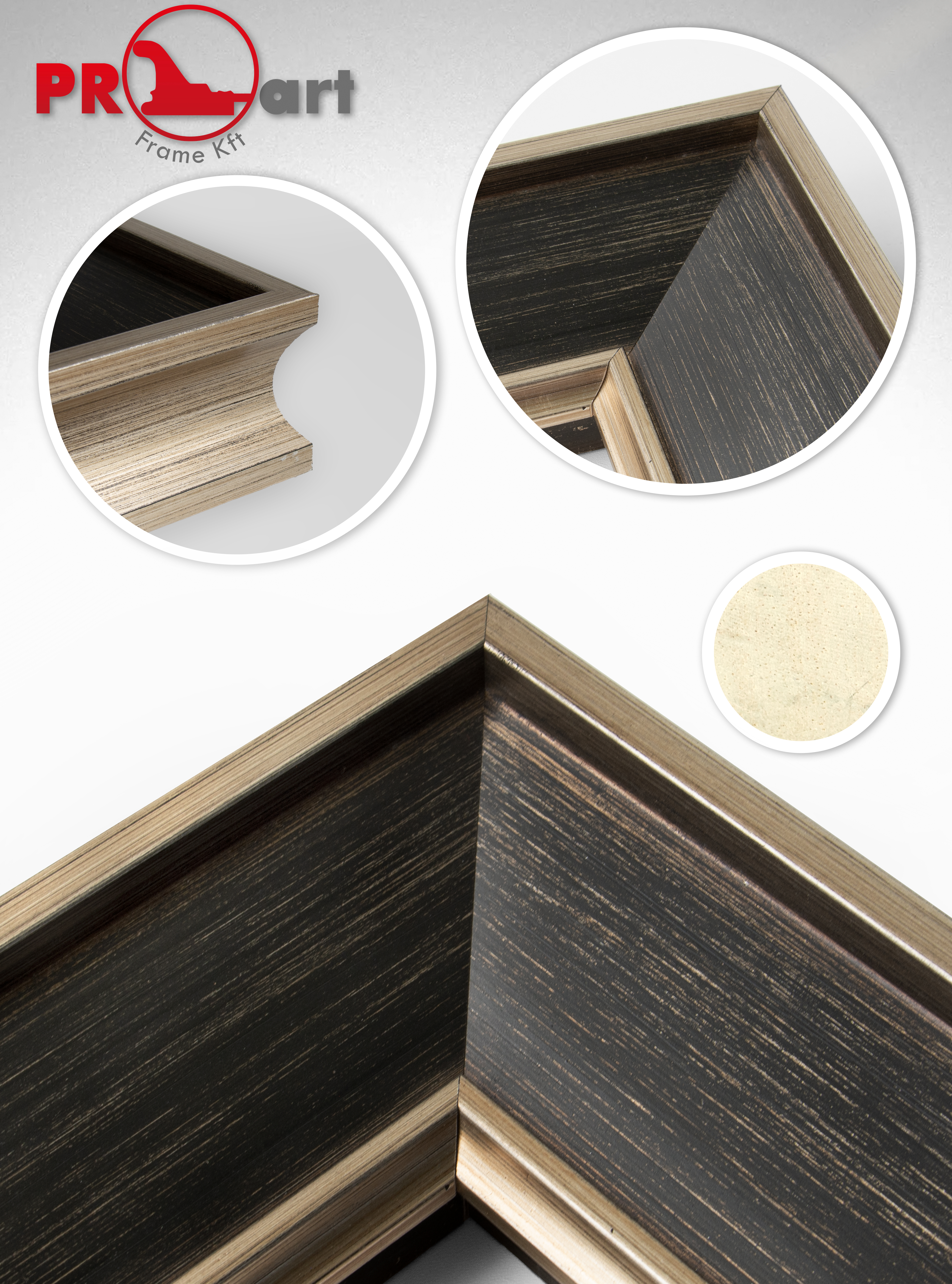 Képkeretléc TK2-01 Kérdése van? Befelé mélyülő képkeretléc, belül kopottas-barnás felülettel, ezüst élekkel.