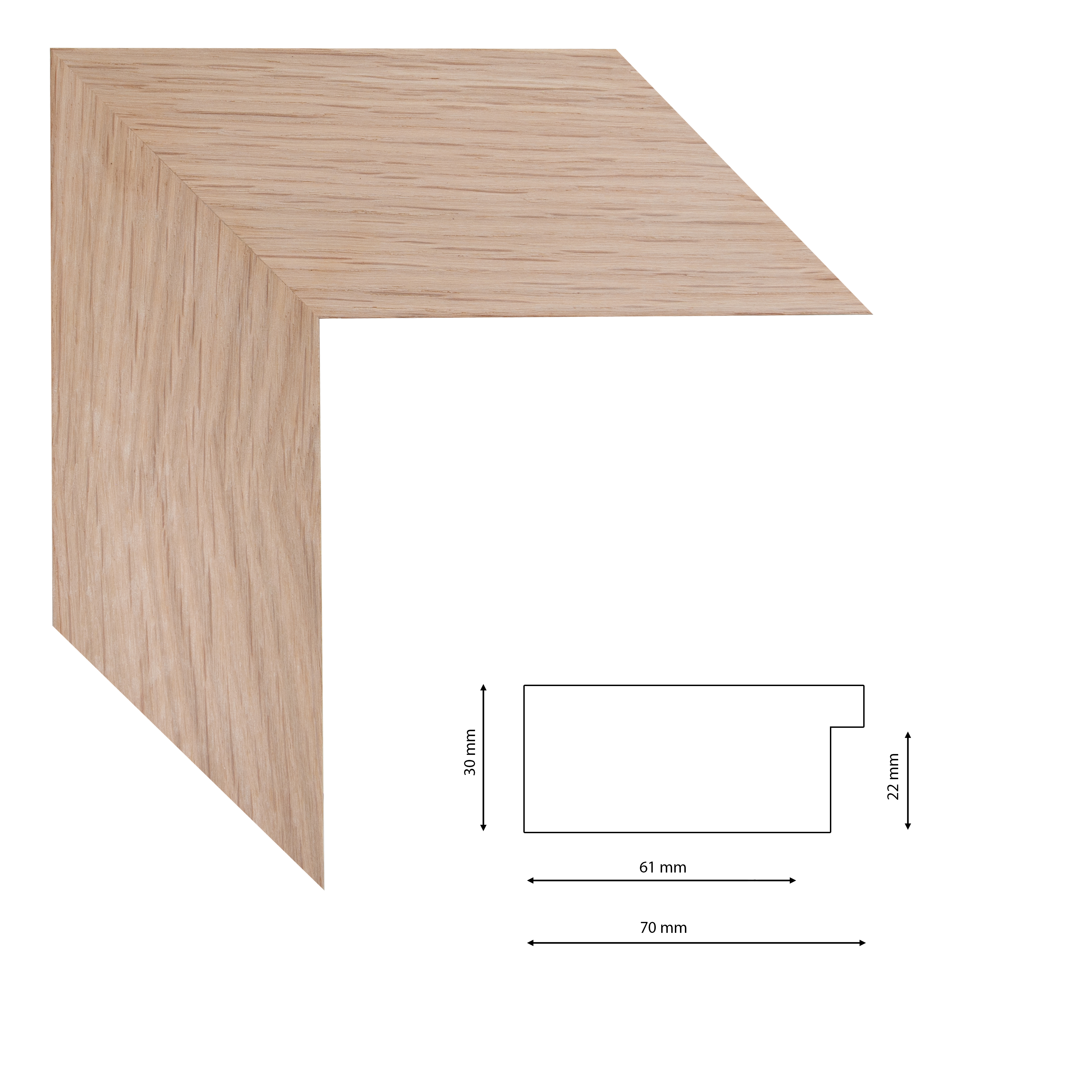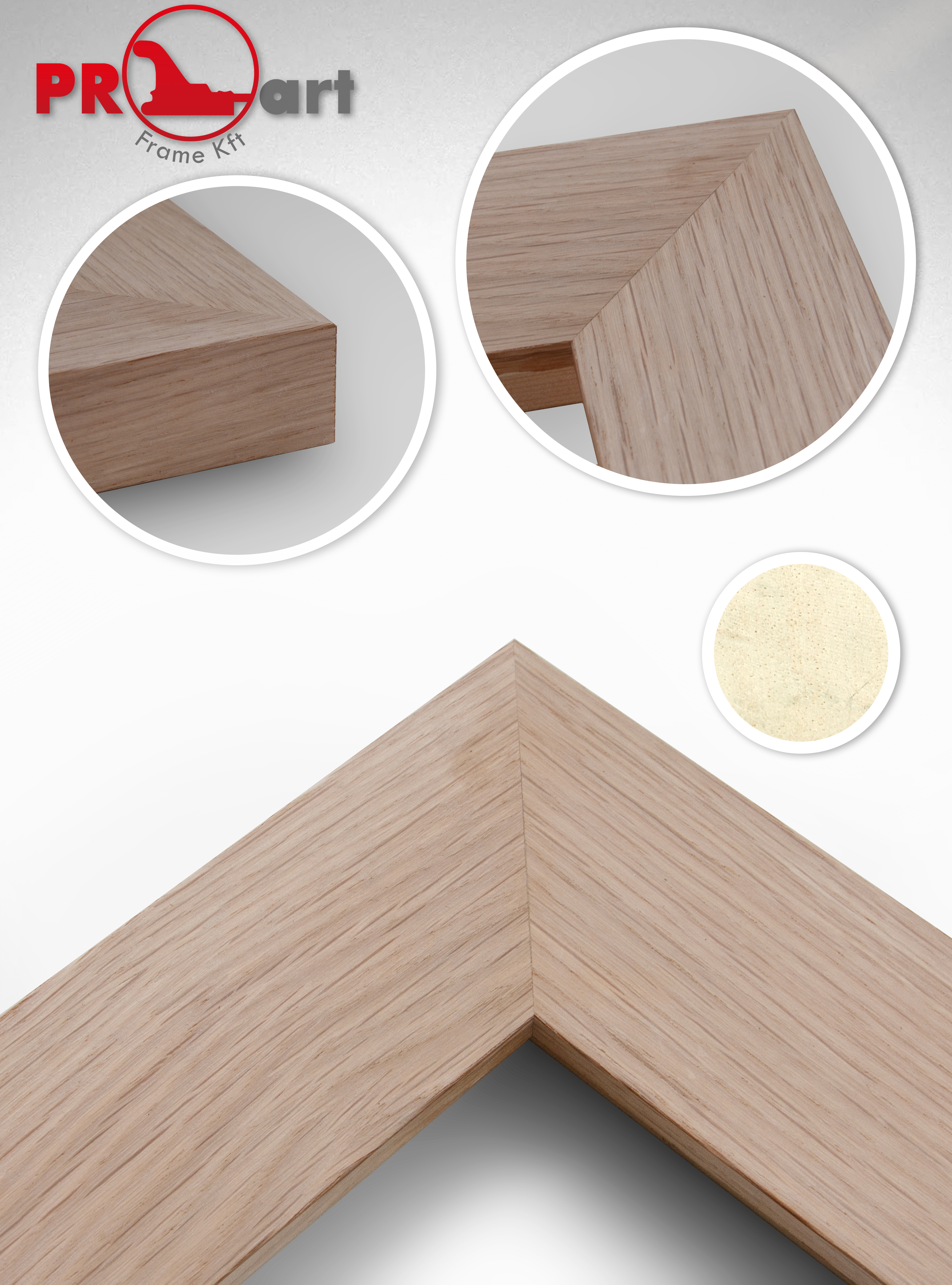 Furnérozott natur tölgy képkeretléc fenyőből.